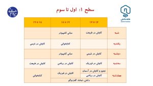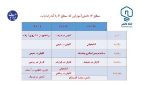 توجه: در صورتیکه در انتخاب سطح (رده سنی) یا ساعت دلخواه برای دورهها مشکلی پیش آمد یا ظرفیت دوره تکمیل شده بود، به خانه دانش مراجعه کرده یا با تلفنهای 09981269134 و ۳۳۳۲۷۳۷۷ تماس بگیرید.