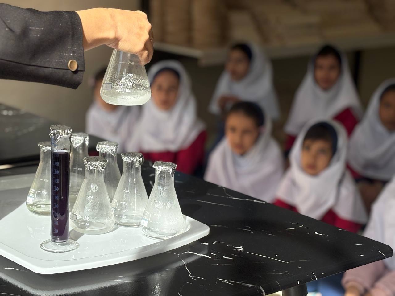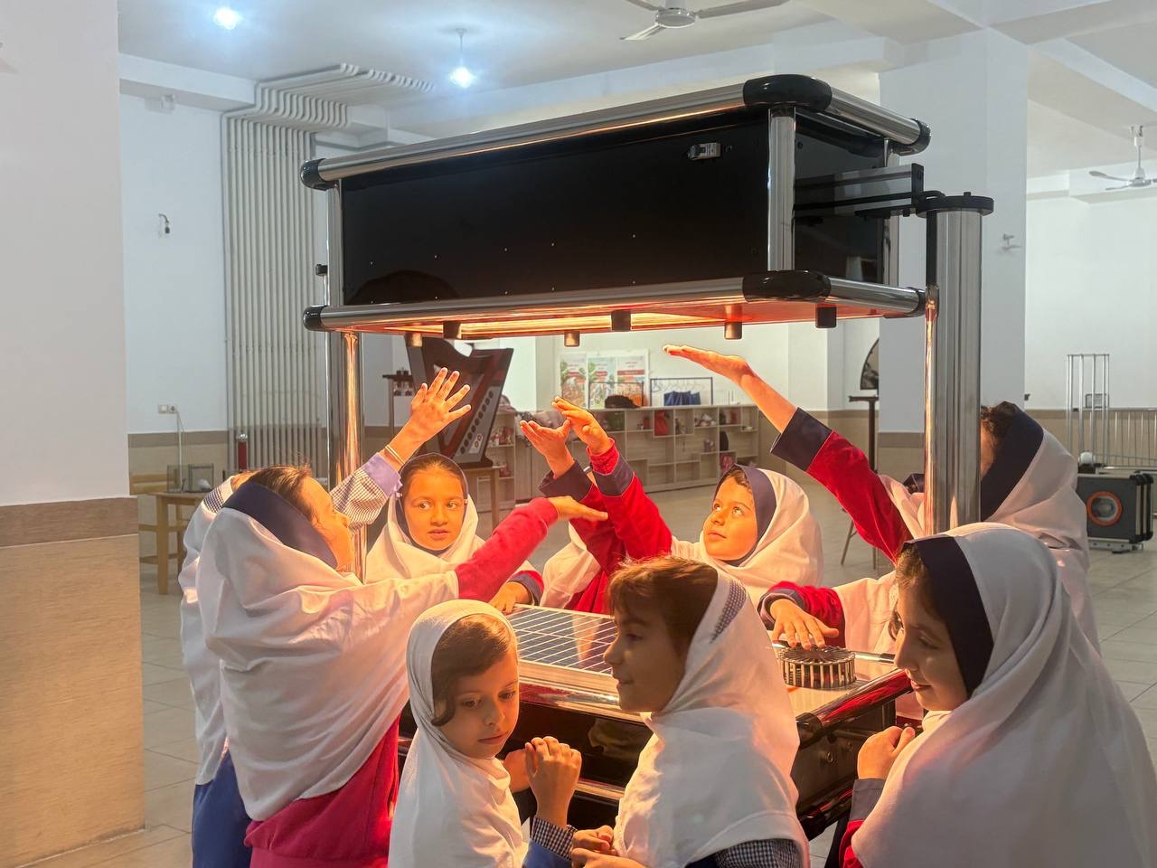 دانشآموزان در این بازدید ضمن آشنایی با فعالیتها و بخشهای مختلف خانه دانش، با همراهی اعضای کارگروه اجرایی خانه دانش در موزه علم خانه دانش به مشاهده و آشنایی با قوانین علمی در قالب دستگاههای تعاملی و چیدمانهای علمی نمایشگاه خانه دانش پرداخته و کار با آنها را بهشکل مستقیم تجربه کردند. سپس تجربههای کاوشی کنجکاوانهای داشتند و آزمایش شناساگرهای شیمیایی و واکنش شیمیایی تغییر رنگ را تجربه کردند.