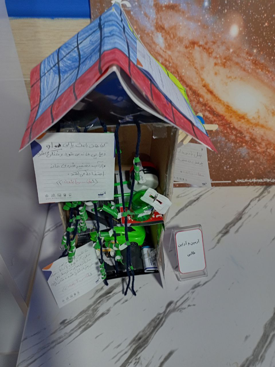 پس از این قسمت خانم فرهادیان درباره فعالیتهای علمی دکتر ثبوتی و کارهایشان در زمینه تغییر اقلیم و گرمایش زمین صحبت کوتاهی داشتند و بالاخره زمانی که همه چشمانتظارش بودیم فرا رسید، خوشحالیم که در هفتهای که با زادروز فرخنده استاد شروع شد و در آستانه هفتهای هستیم که سالروز آغاز چهارمین سال فعالیت خانه دانش است، حضور استاد یوسف ثبوتی شادیمان را تکمیل کرد. پس از گفتو شنود صمیمانه استاد با بچهها در ادامه بحث درباره تغییر اقلیم و گرم شدن زمین و پاسخ به پرسشهای بچهها، ایشان به بازدید از کارهای بچهها و شنیدن توضیحاتشان پرداختند از اثر گلخانهای و طراحی ساختمان انرژی صفر گرفته تا خورشیدی که در حال کباب کردن زمین است و خرس قطبی نگران از آب شدن یخها و… در این بین توضیحات دکتر خالصیفرد و اشاره استاد به «بچهها هر سوالی دارید بپرسید» کافی بود که بچهها بخواهند از هر زمینهای صحبت کنند و بپرسند…
