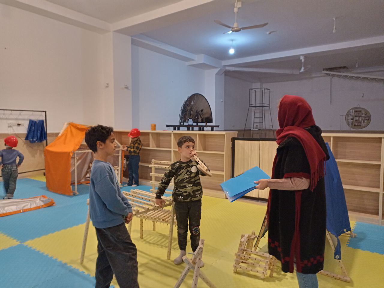 هنوز ساعت 4 نشده ولی بچهها دواندوان آمدند و چشم انتظار دوستان تازه یافته سازهبازیشان در مسابقههای قبلی، سراغ گروههای رقیب را هم میگیرند. این هفته تغییرات بخش سازهبازی باعث هیجان و اشتیاق همه هنگام ورود شد و نقطه عطف آن وجود پوششهای رنگی آویزان شده بود که کنجکاویها را برانگیخت و خوشحالی بچهها را دوچندان کرد.
