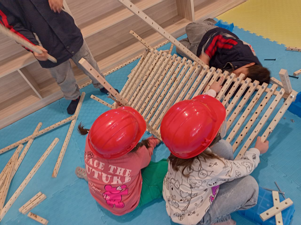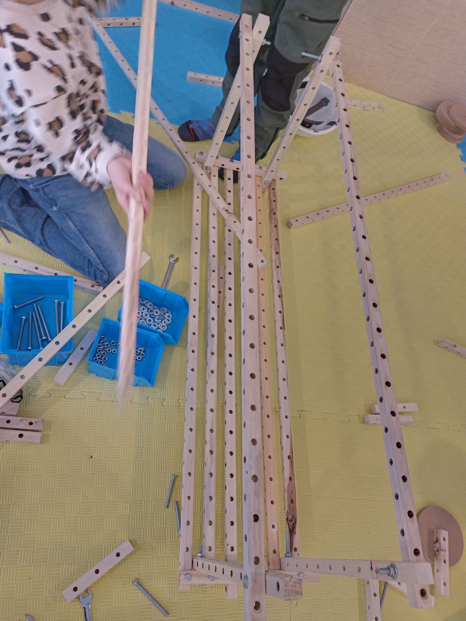 آرام آرام پلها شکلشان را نشان میدهند، درخواست پیچ و مهرههای اضافی و دقت بچهها روی اندازه پیچها هم جالب بود، با جدیت طرحشان را دنبال و تکمیل میکردند. بالاخره ساخت و سازشان به پایان رسید، این وسط سری هم به موزه زدند. با پایان کار وسوسه شدن والدین برای امتحان سازهبازی هم دیدنی است، تا به خودشان بیایند دارند پیچی میبندند و چوبی به سازه اضافه میکنند.