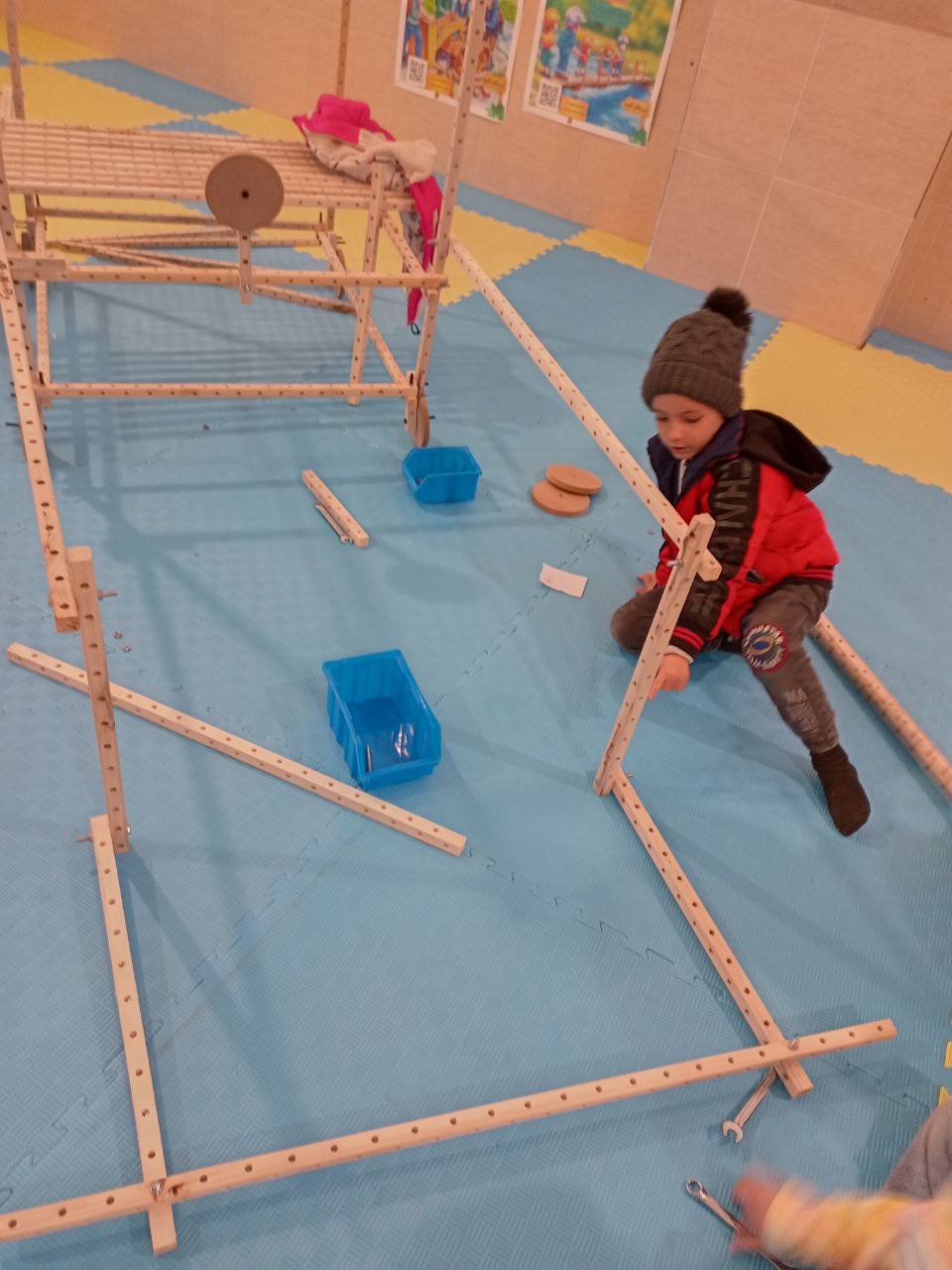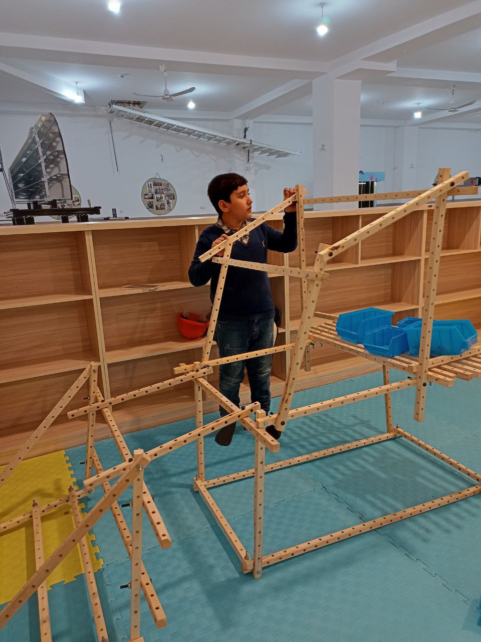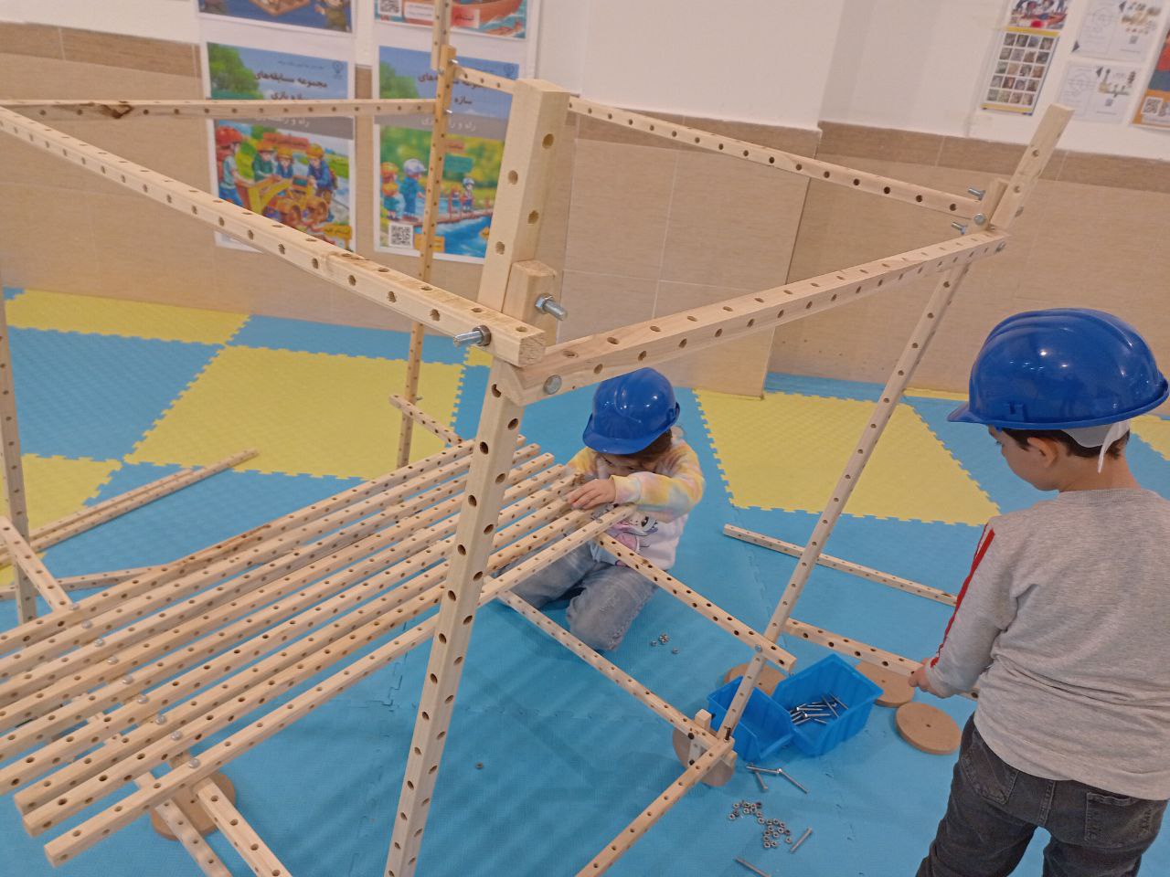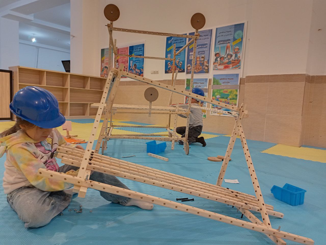 هفته دوم برای دیدن و شگفتزده شدن از سازهبازی حرفهایها بود؛ از طراحی و پیاده کردن نقشههایشان گرفته تا مهارت و به کاربردن تکنیکهای کاربردی در استفاده از ابزارها. ساعت هنوز 4 نشده ولی دیگر نمیشود در برابر اشتیاق بچهها برای شروع مسابقه ایستاد، یک اشاره کافی است تا چوبها به حرکت درآمده و ساخت و سازها شروع شوند. دستهبندی، جایگذاریهای خاص روی زمین و انتخاب تعداد و اندازههای مشخص چوبها حکایت از حساب و کتاب دقیق بچهها روی نقشههایشان دارد، کوچکترها هم گاهی با پرسشی کوتاه از خانواده بخشهای چالشبرانگیز طرحشان را بهبود میدهند. توانمندی بچهها چشمگیر است، خوشحالیم که تازهواردهایمان هم پس از یک بار تجربه سازهبازی به جمع حرفهایها میپیوندند.