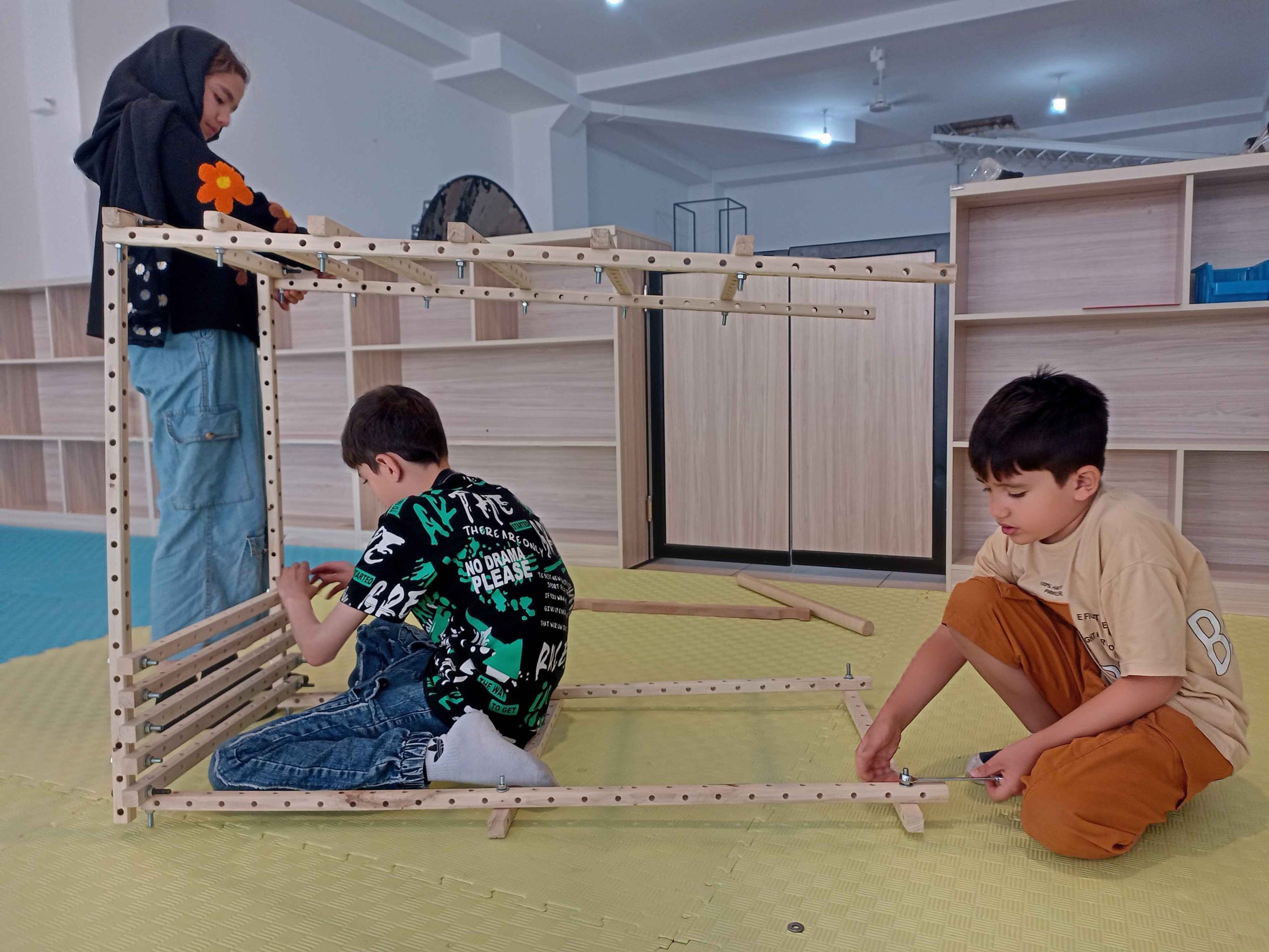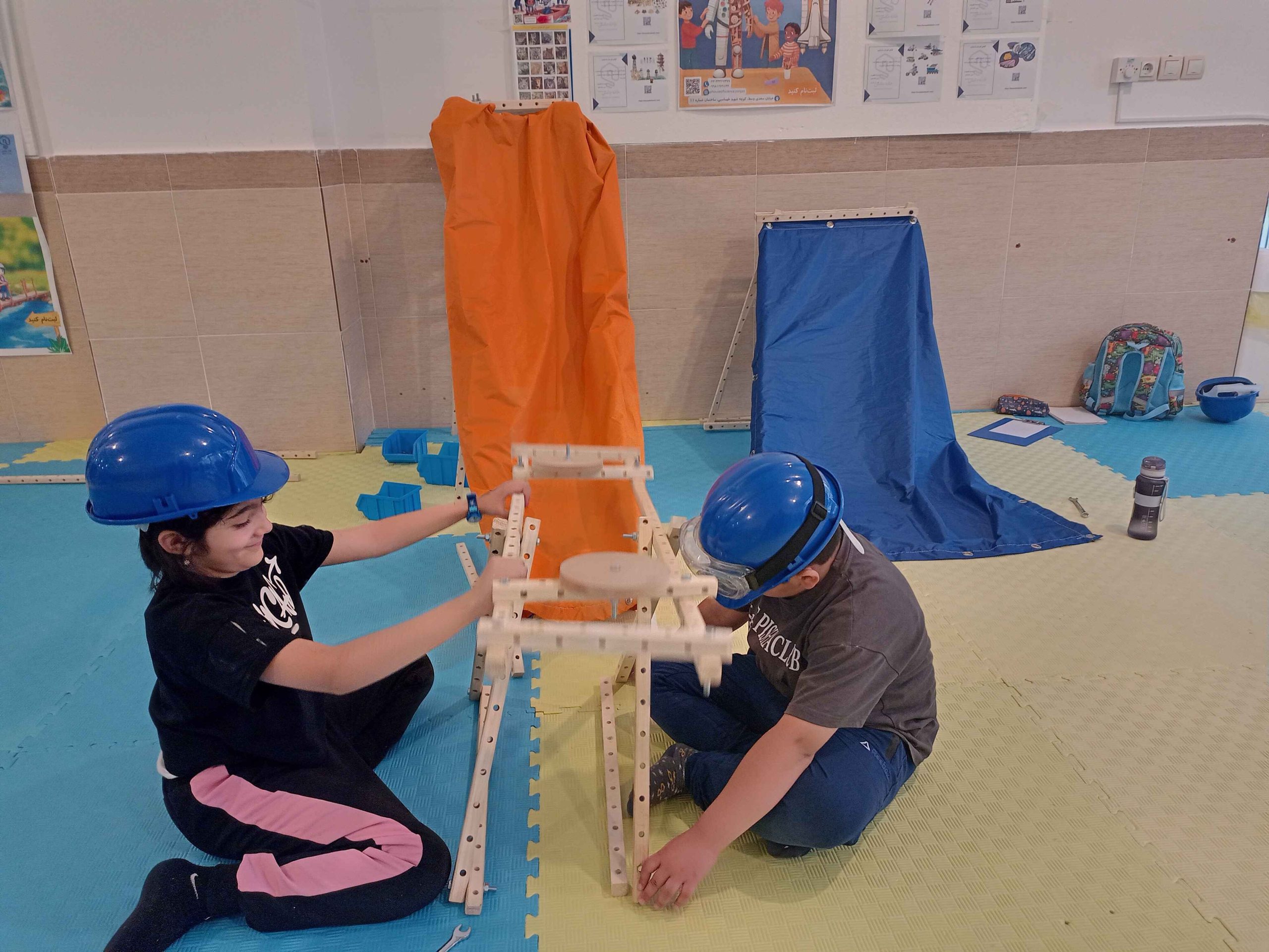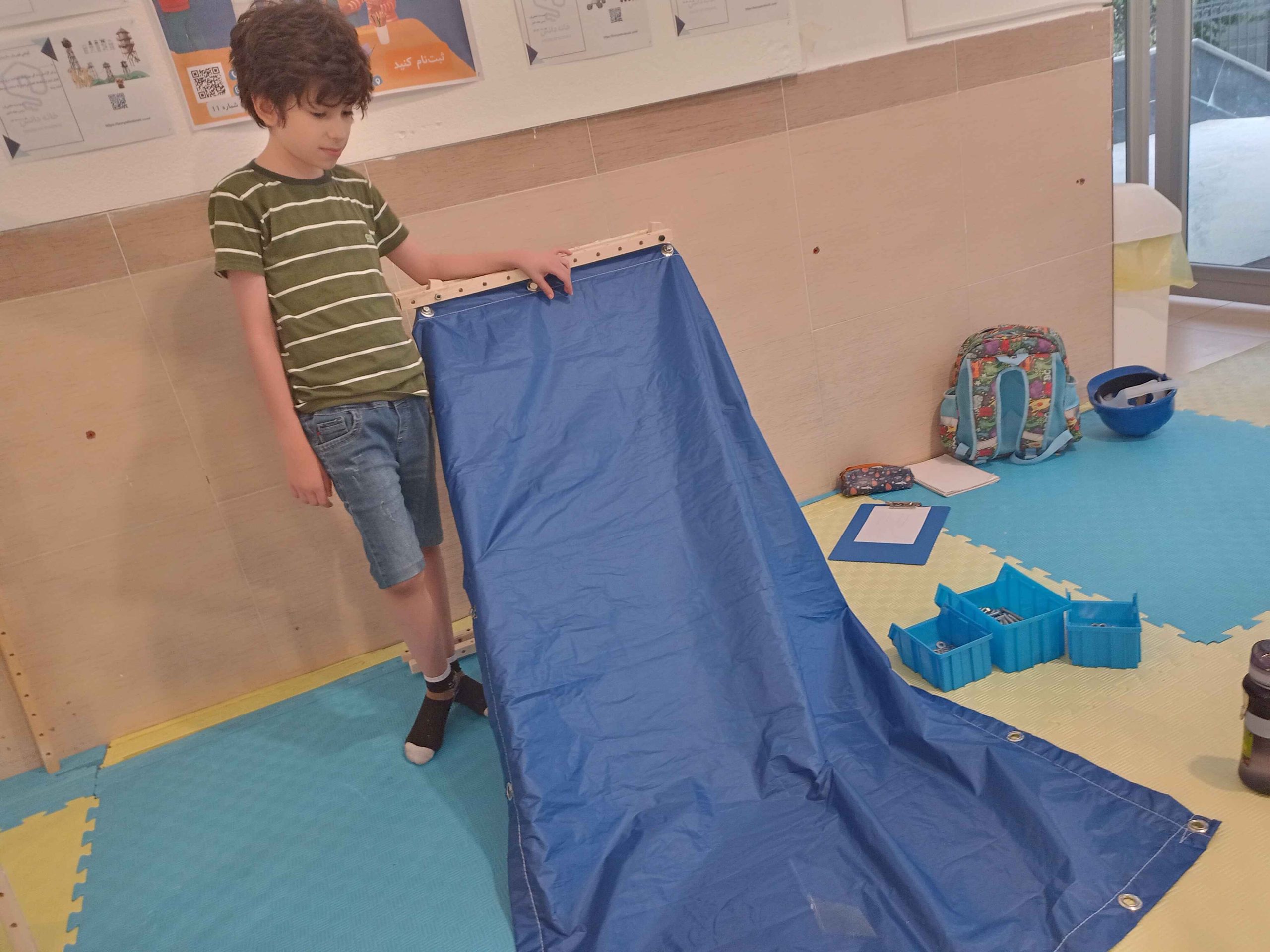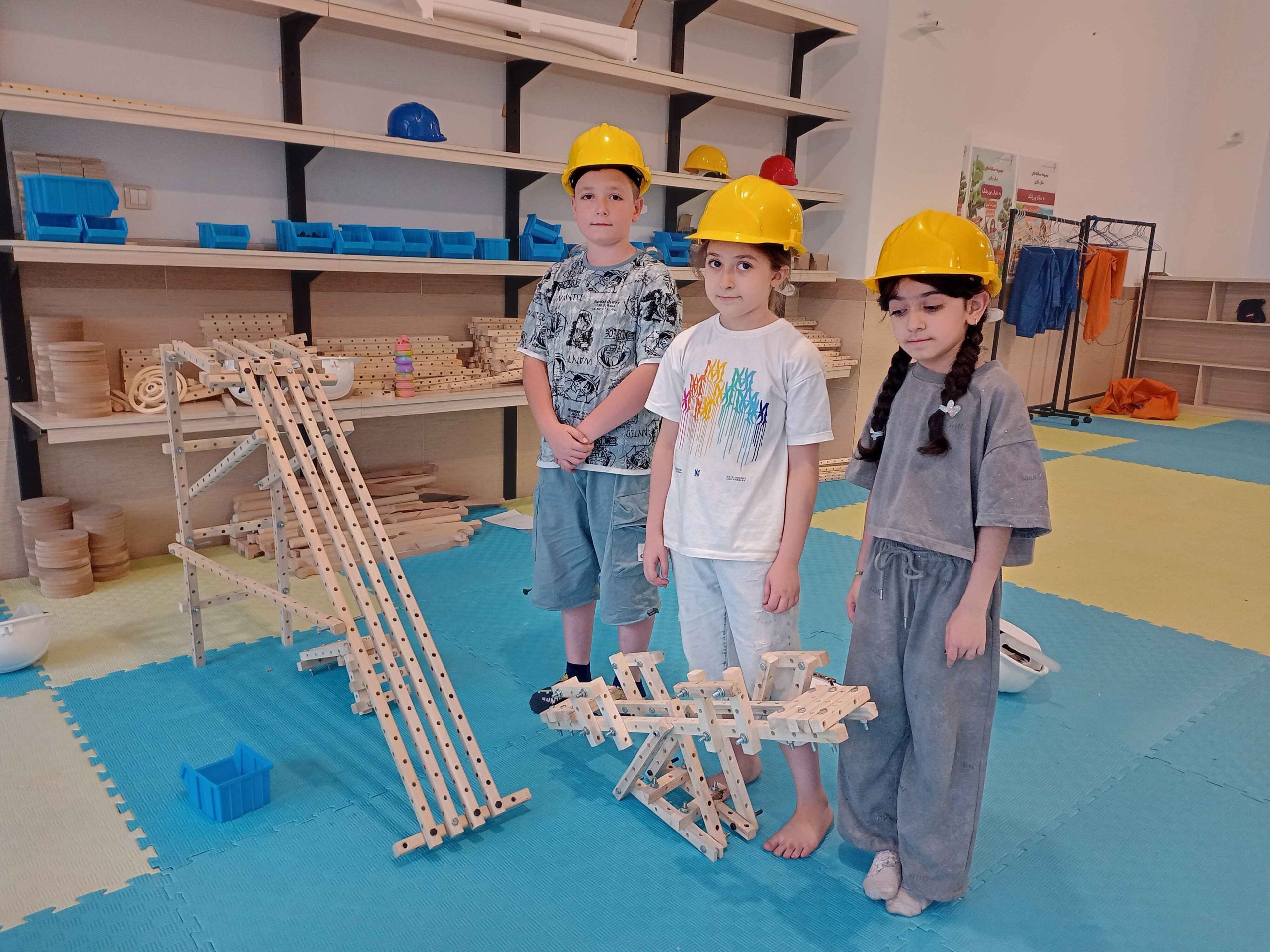 سرسره و الاکلنگ، دو وسیله بازی که از دوران باستان تا به امروز همراه همیشگی شادی بچهها بودهاند. با تکمیل کشیدن نقشهها و مشورت، بیشتر گروهها اول سراغ ساخت سرسره رفتند و تا چشم به هم بزنیم نردبانها در حال ساخت بودند، بعضیها هم با ساخت الاکلنگ شروع کردند. کمکم چالش ساخت سطح شیبدار سرسره و تکیهگاه الاکلنگ شروع شد، با همکاری و همفکری بچهها بالاخره سرسرههای رنگارنگ و الاکلنگهای کوچک و بزرگ شکل گرفتند و چالش ما شروع شد با بچههایی که دلشان میخواست خودشان سرسره و الاکلنگ را استفاده کنند. امتحان کردن سرسرهها هم حل شد، آچار و پیچ بود که از سرسرهها پایین میآمد و خوشحالی بچهها!