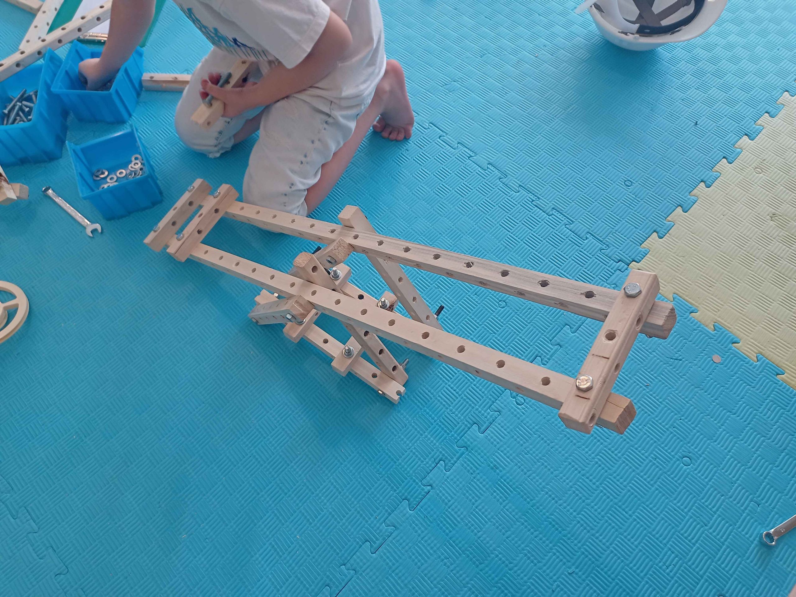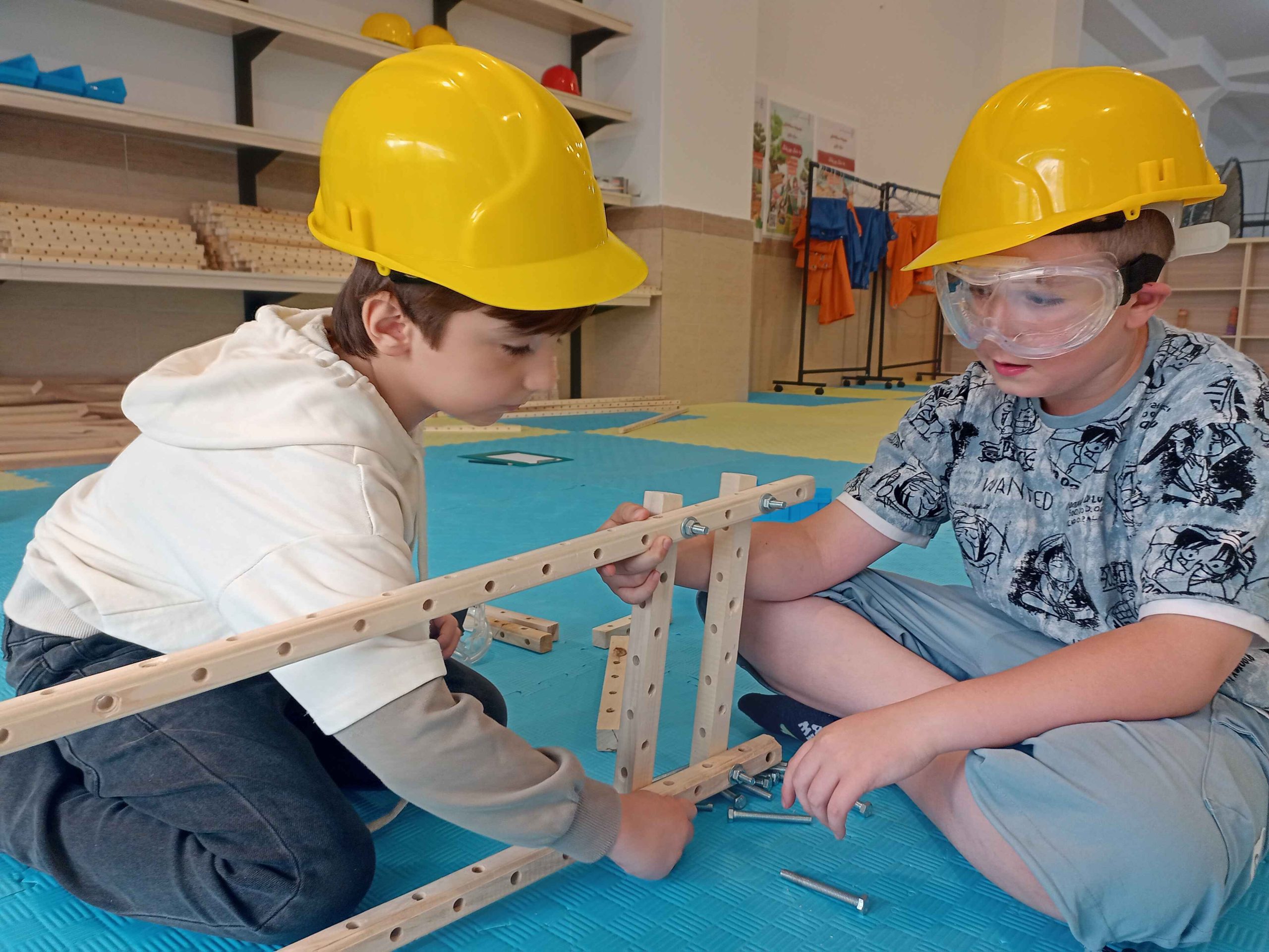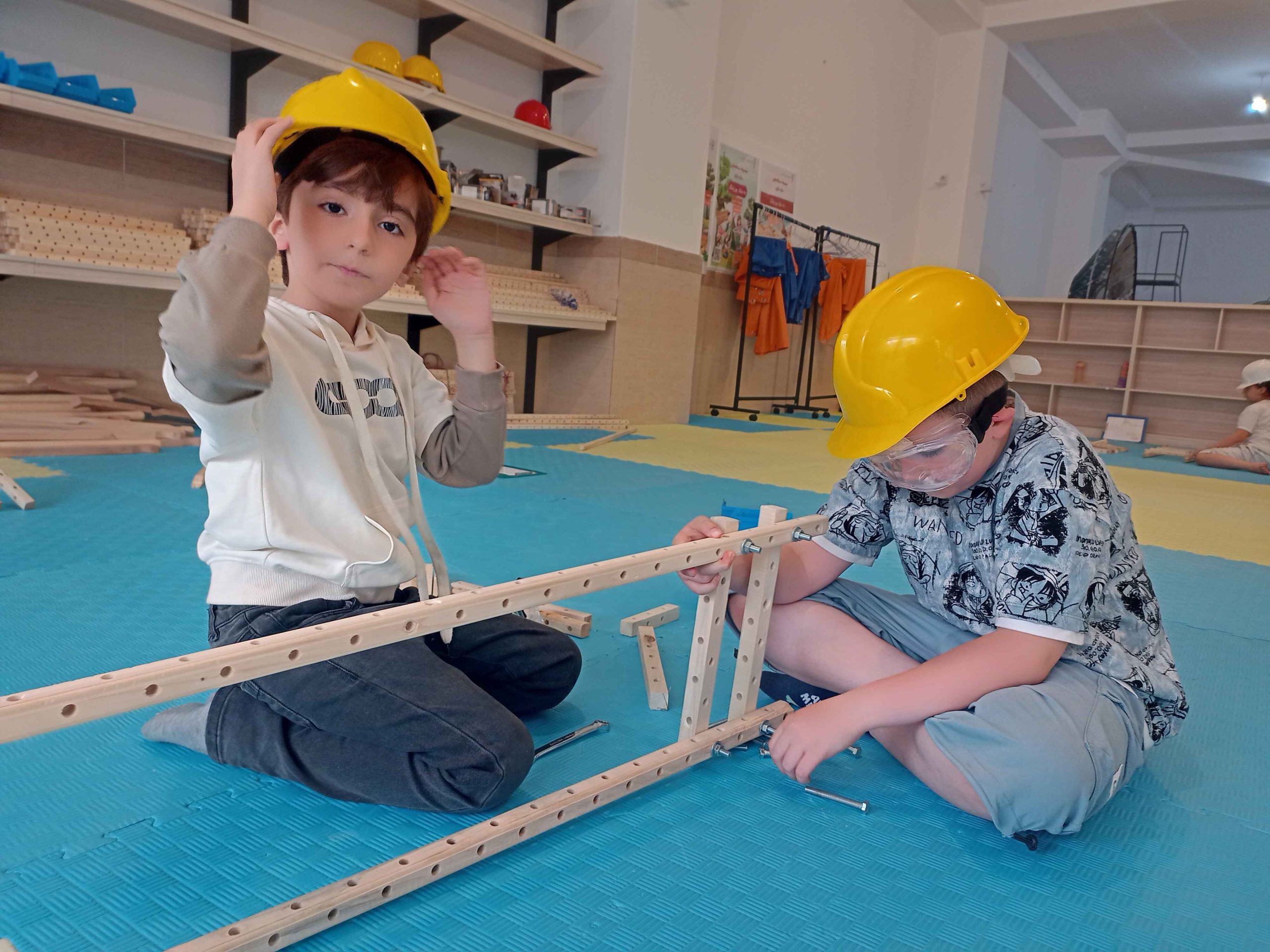 سرسره و الاکلنگ، دو وسیله بازی که از دوران باستان تا به امروز همراه همیشگی شادی بچهها بودهاند. با تکمیل کشیدن نقشهها و مشورت، بیشتر گروهها اول سراغ ساخت سرسره رفتند و تا چشم به هم بزنیم نردبانها در حال ساخت بودند، بعضیها هم با ساخت الاکلنگ شروع کردند. کمکم چالش ساخت سطح شیبدار سرسره و تکیهگاه الاکلنگ شروع شد، با همکاری و همفکری بچهها بالاخره سرسرههای رنگارنگ و الاکلنگهای کوچک و بزرگ شکل گرفتند و چالش ما شروع شد با بچههایی که دلشان میخواست خودشان سرسره و الاکلنگ را استفاده کنند. امتحان کردن سرسرهها هم حل شد، آچار و پیچ بود که از سرسرهها پایین میآمد و خوشحالی بچهها!