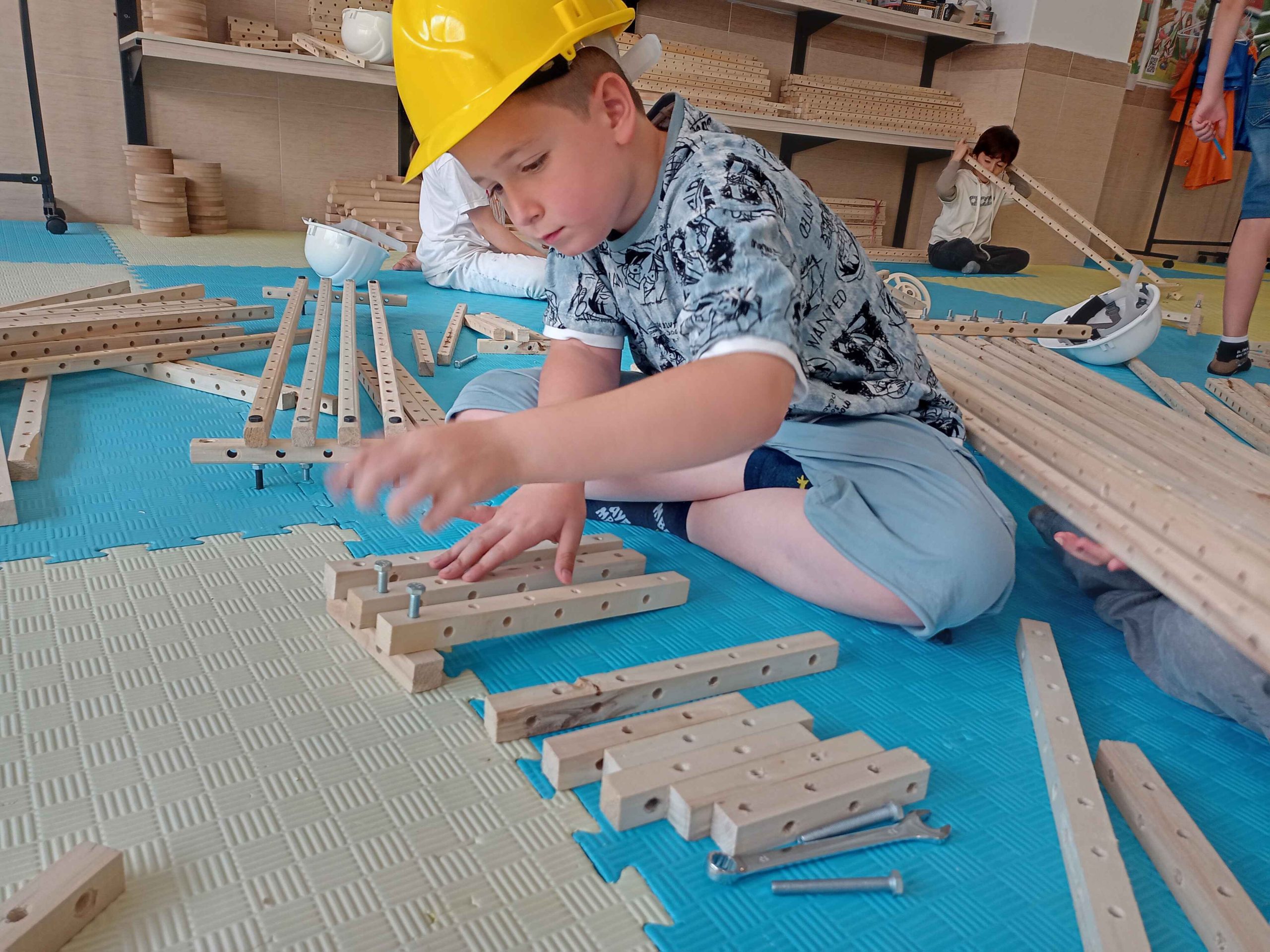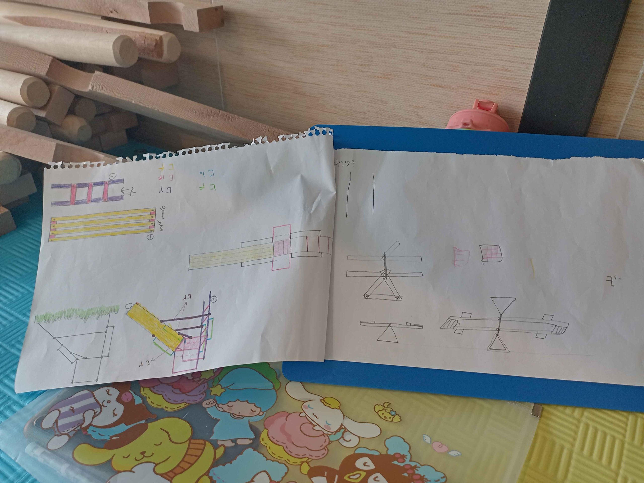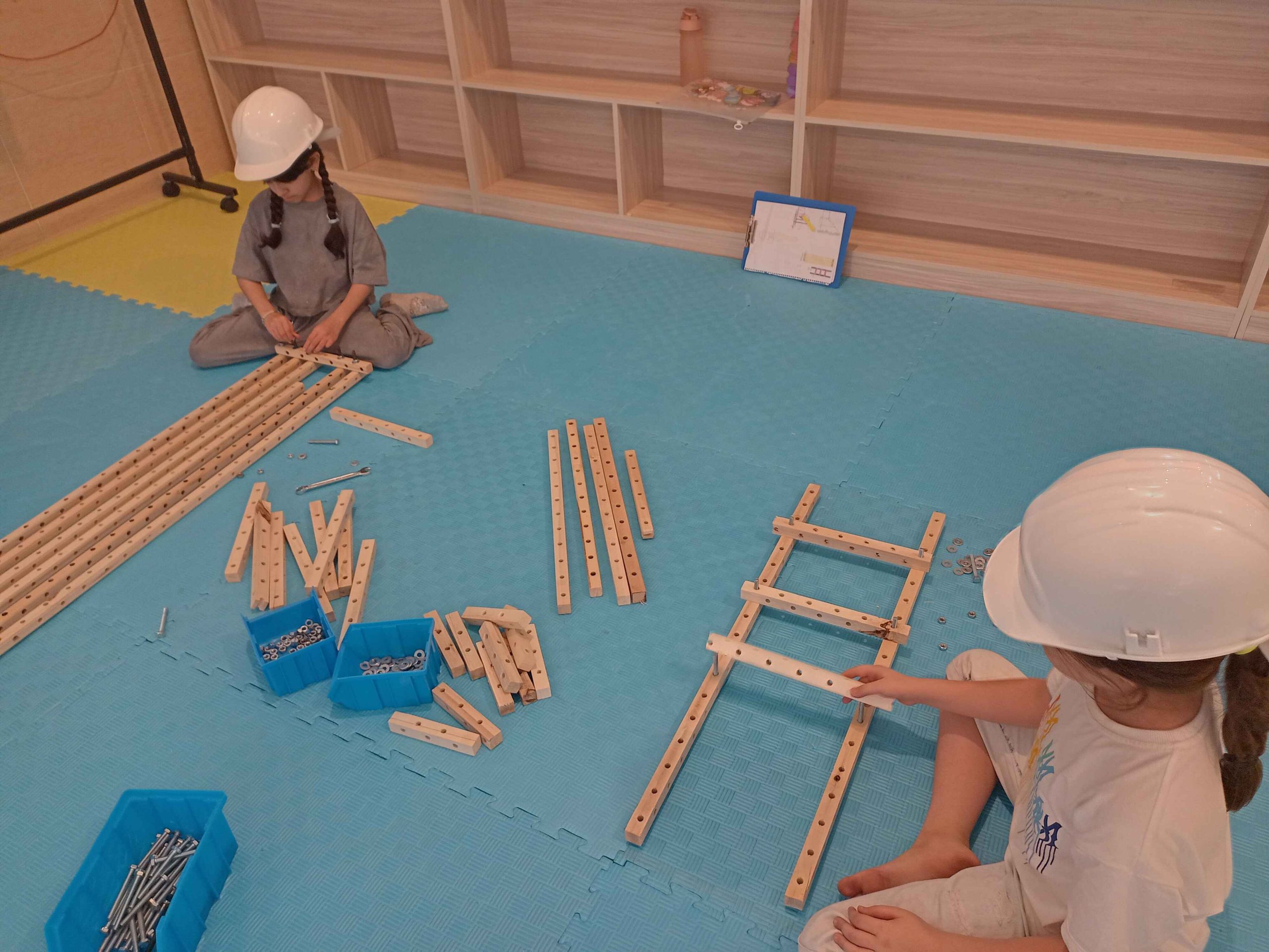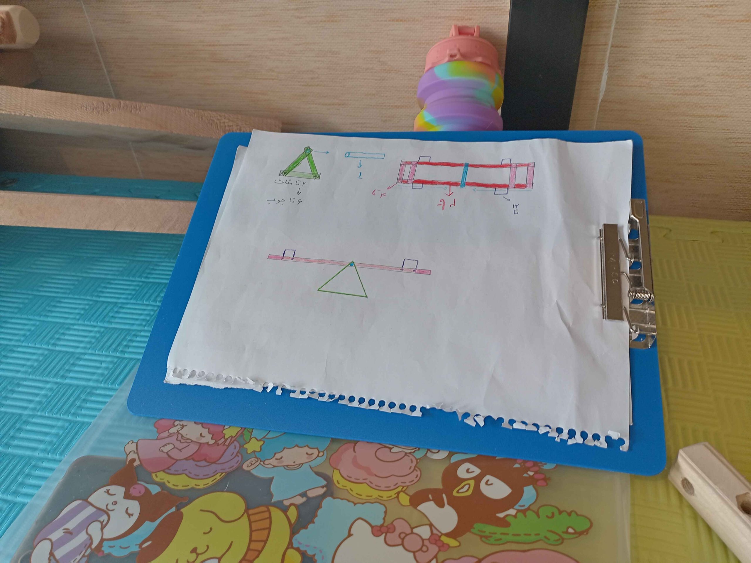 سرسره و الاکلنگ، دو وسیله بازی که از دوران باستان تا به امروز همراه همیشگی شادی بچهها بودهاند. با تکمیل کشیدن نقشهها و مشورت، بیشتر گروهها اول سراغ ساخت سرسره رفتند و تا چشم به هم بزنیم نردبانها در حال ساخت بودند، بعضیها هم با ساخت الاکلنگ شروع کردند. کمکم چالش ساخت سطح شیبدار سرسره و تکیهگاه الاکلنگ شروع شد، با همکاری و همفکری بچهها بالاخره سرسرههای رنگارنگ و الاکلنگهای کوچک و بزرگ شکل گرفتند و چالش ما شروع شد با بچههایی که دلشان میخواست خودشان سرسره و الاکلنگ را استفاده کنند. امتحان کردن سرسرهها هم حل شد، آچار و پیچ بود که از سرسرهها پایین میآمد و خوشحالی بچهها!