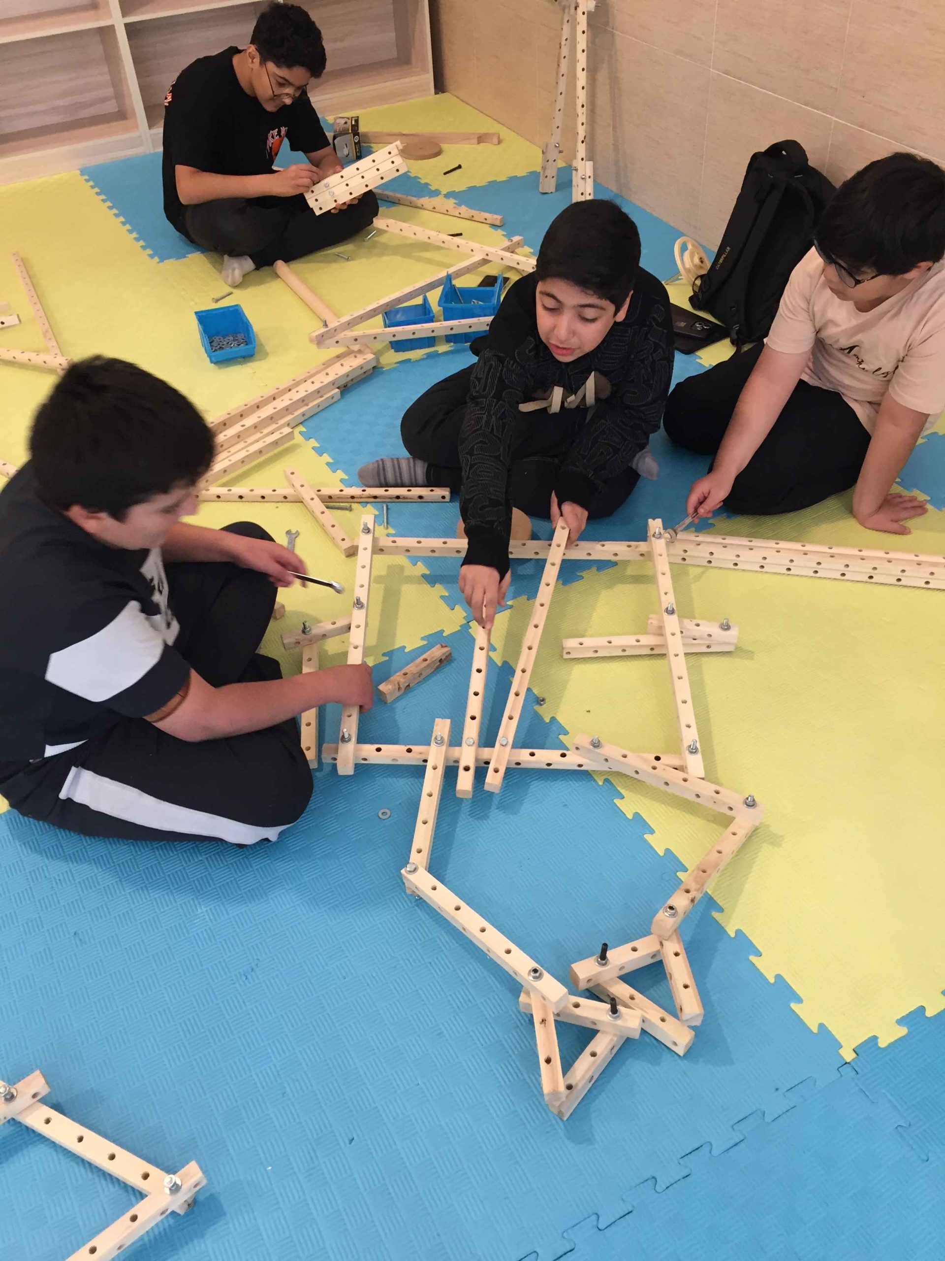 نقشههای بعضی گروهها هم جالبند، پر از جزئیات و پیچیده. کمکم آدمکها سر و شکلی نشان میدهند. از قد و بالای آدمک بعضی گروهها حیران میمانیم، بچهها حرفهای شدهاند، گروههایی هم ترجیح دادهاند بخشهای مختلف را جداجدا بسازند و بعد به هم وصل کنند. در این بین، گفتوگوهای گروهی بچهها هم شگفتانگیزند، مشورت میکنند، نظر میدهند، موافقند، مخالفت میکنند، خراب میکنند، میسازند و میبالند، در سازهبازی به چشم میتوان دید که یادگیری خودش اتفاق میافتد کافی است شرایط مهیا باشد.
