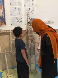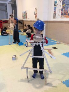 پس از تکمیل آدمکها، بچهها سراغ نصب تجهیزات رفتند، بیشتر گروهها در اولین حرکت، عینکهای ایمنی را به عنوان ماسک غواصی استفاده کردند، مخزن اکسیژن و ماسک صورت و… جالبتر از همه تنوع چراغ قوههایشان بود. بالاخره گروهها اعلام کردند غواصشان آماده است. یکی از بهترین بخشهای سازهبازی شنیدن توضیحات بچهها درباره ساختههایشان است. میشود ساعتها و ساعتها شنید و گام به گام گردشگر دنیای قشنگشان شد. شما هم موافقید بیشتر بچهها در گوشه ذهن رویای غواصی و غواص شدن دارند؟! شاید هم این رویا، امروز راهنمایشان بود که اینقدر ماهرانه میساختند.