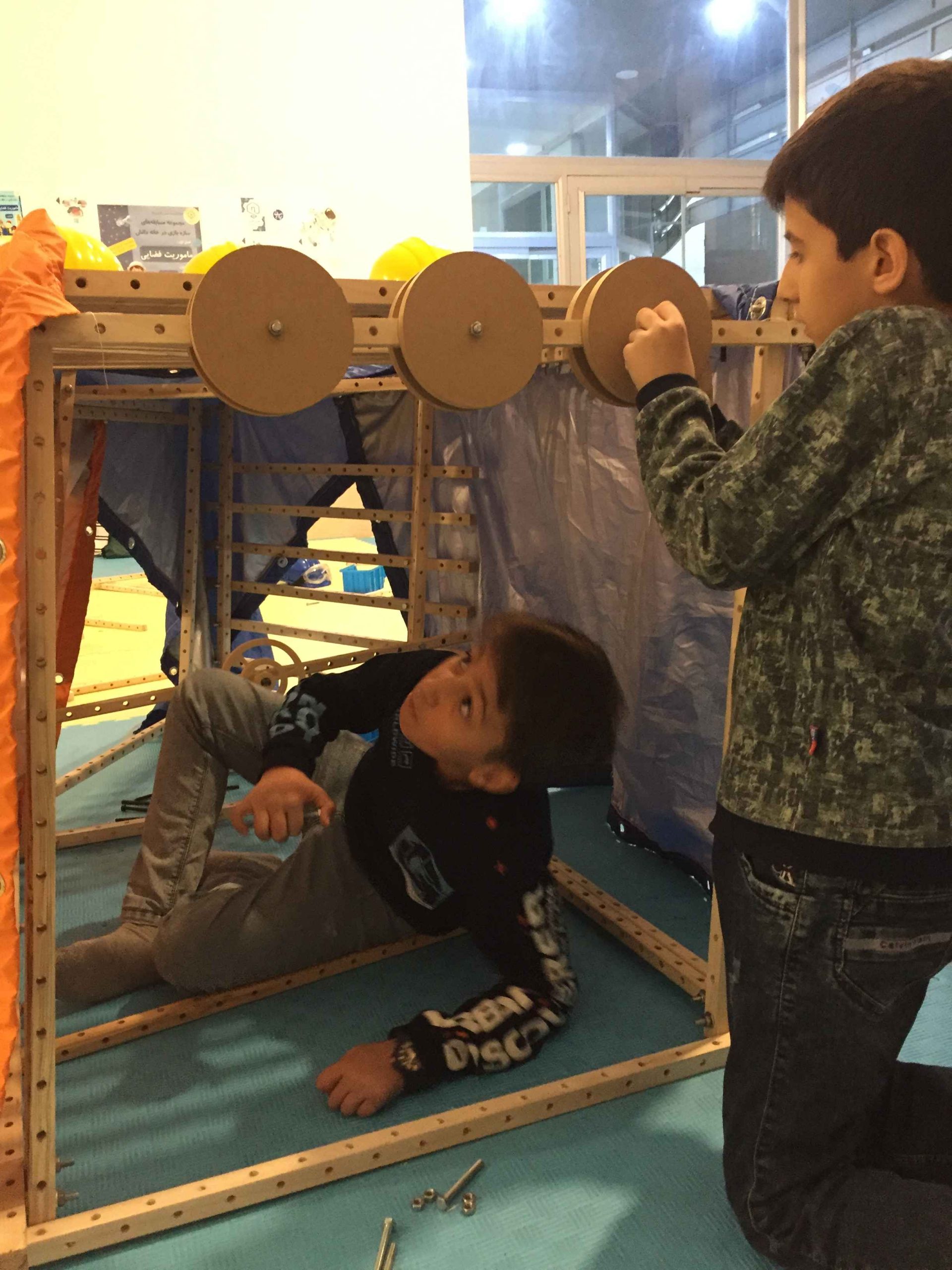 «ما همگروهی میخواییم» را حتی از گروههایی که چند دوست با هم آمدهاند، هم میشنویم تا باز هم بنویسیم: این چوبها شگفتانگیزند. زمینها به سرعت پر از چوب و پیچ و مهره میشود، سردرگمیهای اولیه و «این که مثل خونه شد» و پرسشهایی درباره انواع زیردریاییها و «نه مال ما همون تحقیقاتیه! تحقیقاتی بهتره» و نگرانی از ساختن جایی برای خرگوششان! و «میشه با این چوبها چیز گرد هم بسازیم؟» و مزاحم کاوش بچهها نمیشویم چون مطمئنیم چه زود و چه دیر بالاخره راهش را پیدا میکنند و لذت کشفش را میبرند.