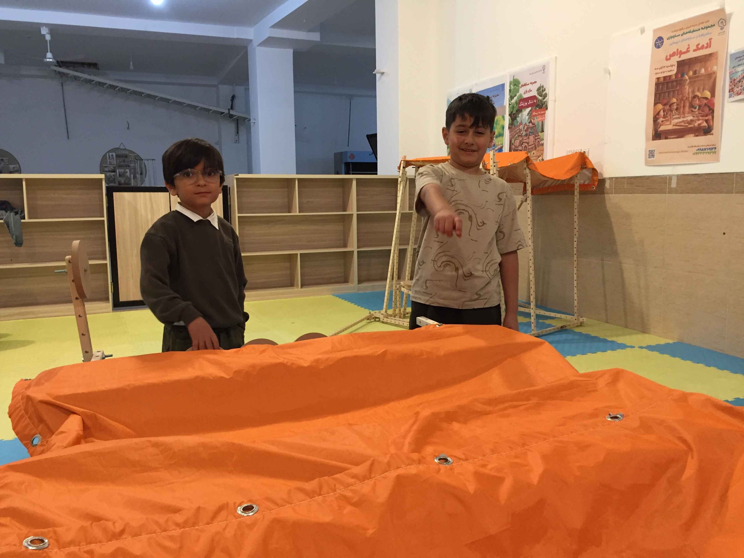 بخش توضیحات بچهها و همراه دنیایشان میشویم و اعماق آبها را میگردیم، بعضی گروهها به شدت سعی میکنند تجهیزات زیردریاییشان را کامل نشان دهند حتی شده به سوراخ روی چوبها هم نقشی میدهند، کم هم بیاورند «این قسمتش مخفیه» و خنده و شیطنت بعدش رو به همگروهیها «بچهها نجاتتون دادم»!