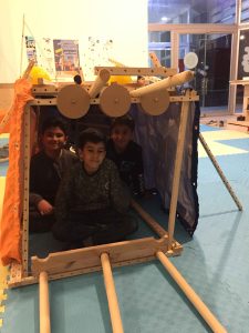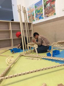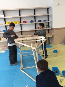 کمکم بدنه زیردریاییها شکل میگیرند، چالش بسته بودن محیط زیردریایی و اینکه بخواهند با چوبها تمام محیط زیردریاییشان را بپوشانند و نگاهشان به ساعت و… و مسئله را حل میکنند که نتیجهاش میشود چند زیردریایی رنگارنگ. نوبتی هم که باشد نوبت ساخت جزئیات است از موتور و باله و سکان و بادبان (بله درست خواندید زیردریاییها هم سازهای عمود به بدنه به نام بادبان دارند) و مانیتور و تقسیمبندی فضای داخلی گرفته تا غذا و تصفیه آب و آنتن و پریسکوپ و لپتاپ و سوئیچ و به قول بچهها چوببرگرها! و برق شادی چشمانشان وقتی سوالی درباره سازهاشان میپرسی.