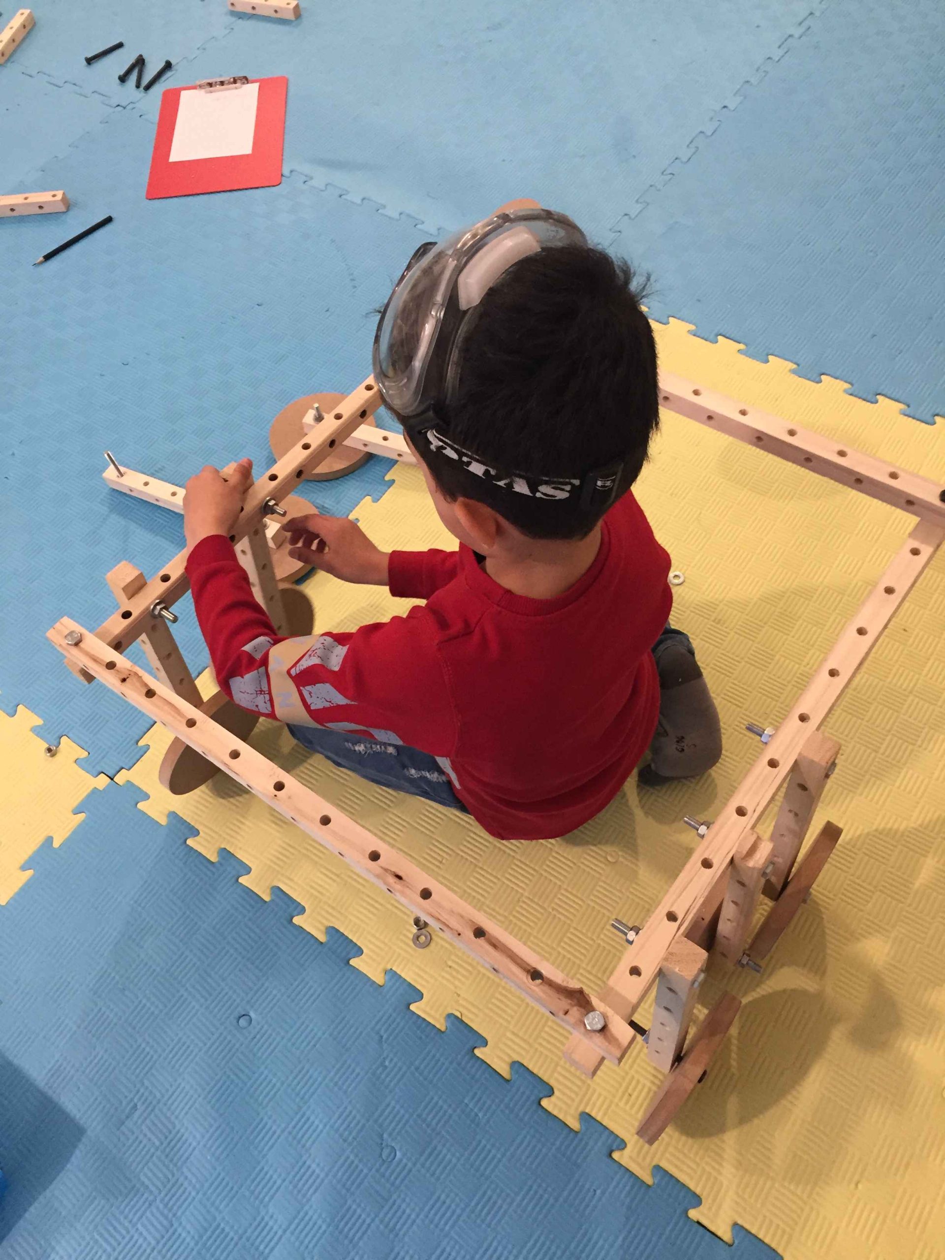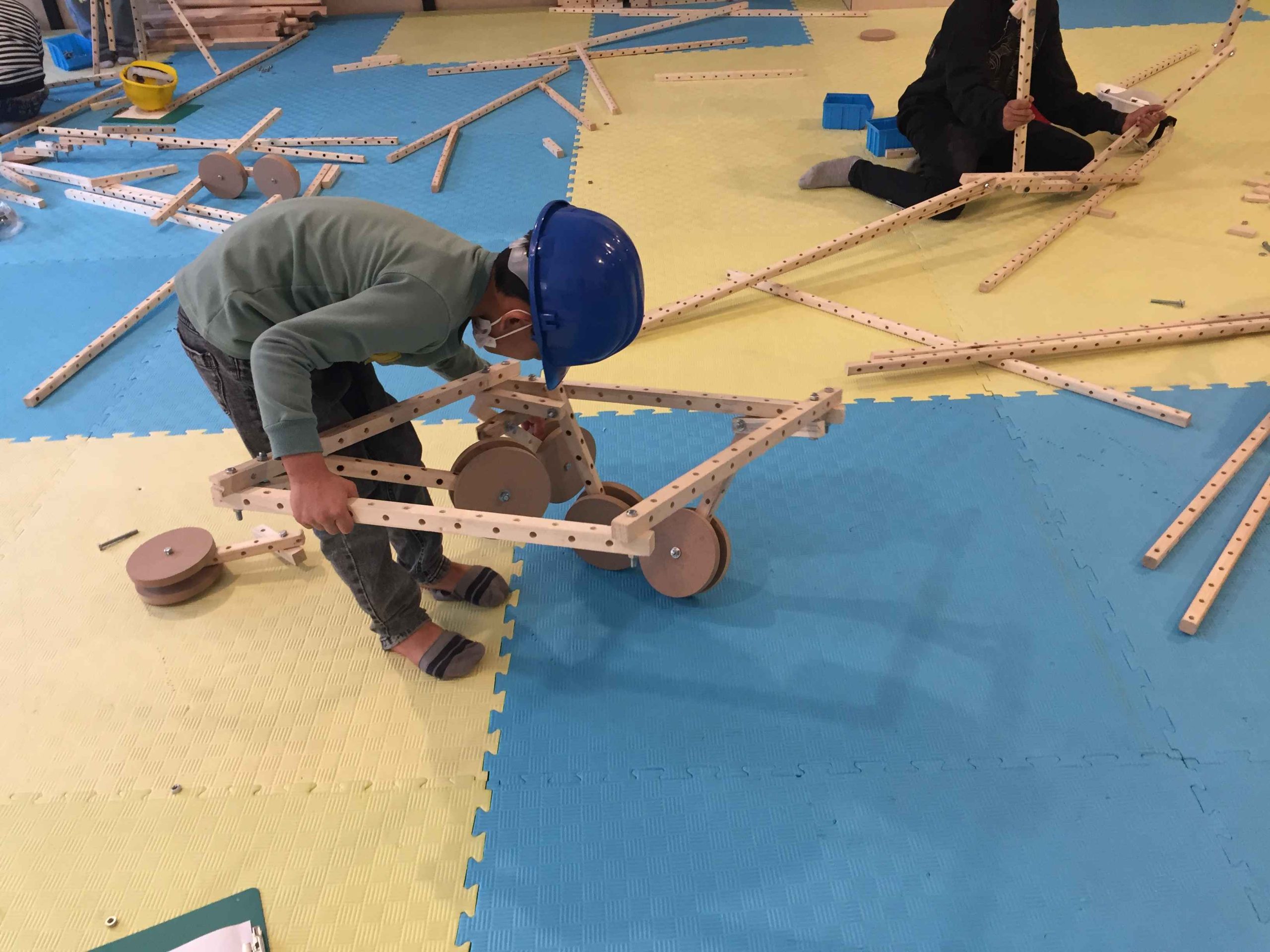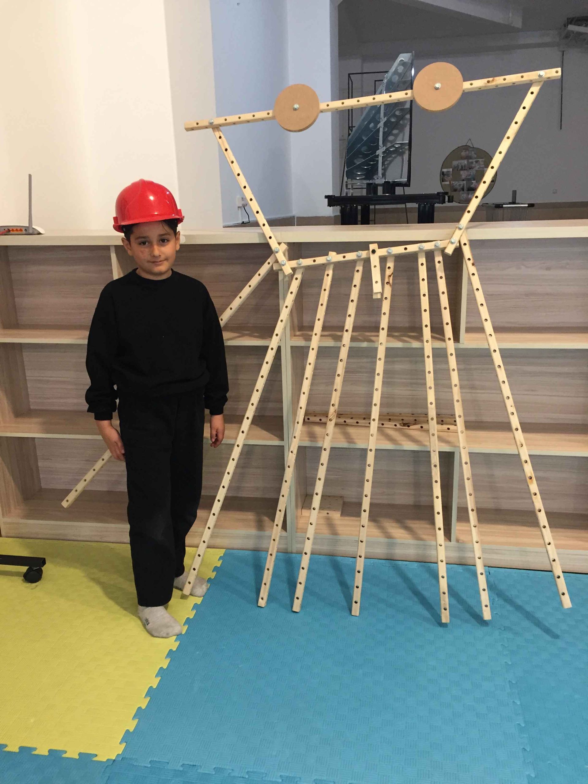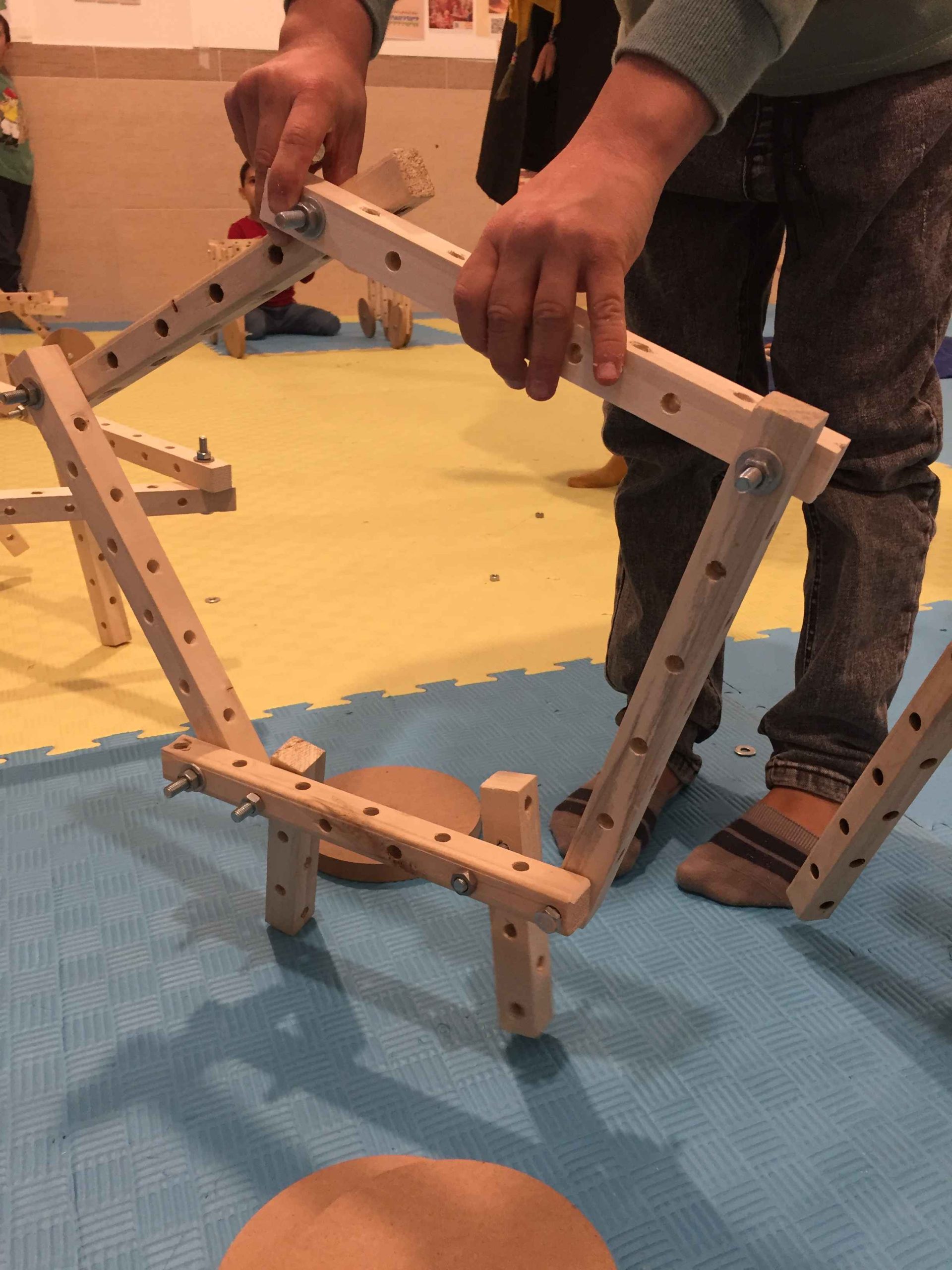 هیاهوها و کشمکش‌های اولیه تا بالاخره هر گروهی تصمیم بگیرد کار را از کجا شروع کنند. یک ربعی بود ساکتِ ساکت وسط زمین نشسته بود، «دارم فکر می‌کنم» و کم‌کم شروع به ساختن کرد. از همین اول وقتی بیشتر بچه‌ها سراغ هشت چوب بلند می‌روند، پیداست این هشت‌تا پا برایشان مهم‌ترین بخش است و به بقیه‌اش چندان اهمیت نمی‌دهند! شاید برای شما هم جالب باشد فقط دو بازوی عقبی مانند پا استفاده می‌شوند «شش‌دستِ دوپا»!