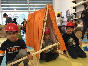 سازه‌بازی هم کم‌کم بچه‌ها را سمت خودش کشاند، دیگر به سختی می‌شد زمین و چوب‌ها را دید، چادر محبوب‌ترین سازه بچه‌ها بود، حتی مدل دو طبقه با انبار غذا هم داشتیم، حالا ساده بودن ساختش باعث آن است یا نه، نمودی از خواستِ داشتن فضایی اختصاصی برای خودِ خودشان. انواع خانه و ماشین حتی آدم و اسکوتر هم داشتیم. خلاقیت بچه‌ها در جزئیات حیرت‌انگیز بود. بزرگترها هم خوشحال از راه پیدا کردن به سازه‌بازی مشتاق‌تر از بچه‌ها مشغول بودند. این وسط حضور دوستان با تجربه سازه‌بازی هم جالب بود، تا وارد می‌شدند می‌پرسیدند امروز قراره چی بسازیم؟ یا دنبال مداد و کاغذ بودند برای کشیدن نقشه.