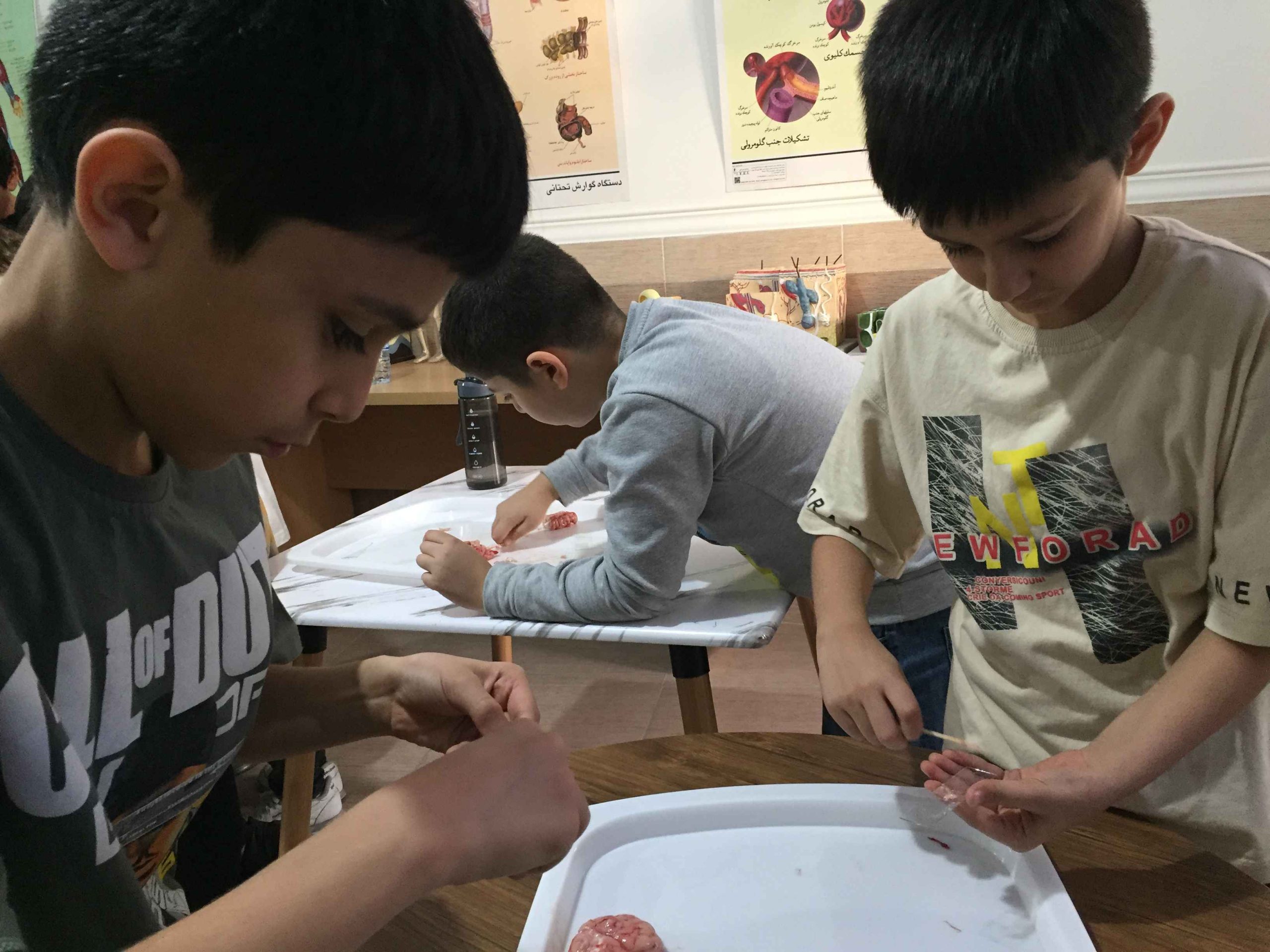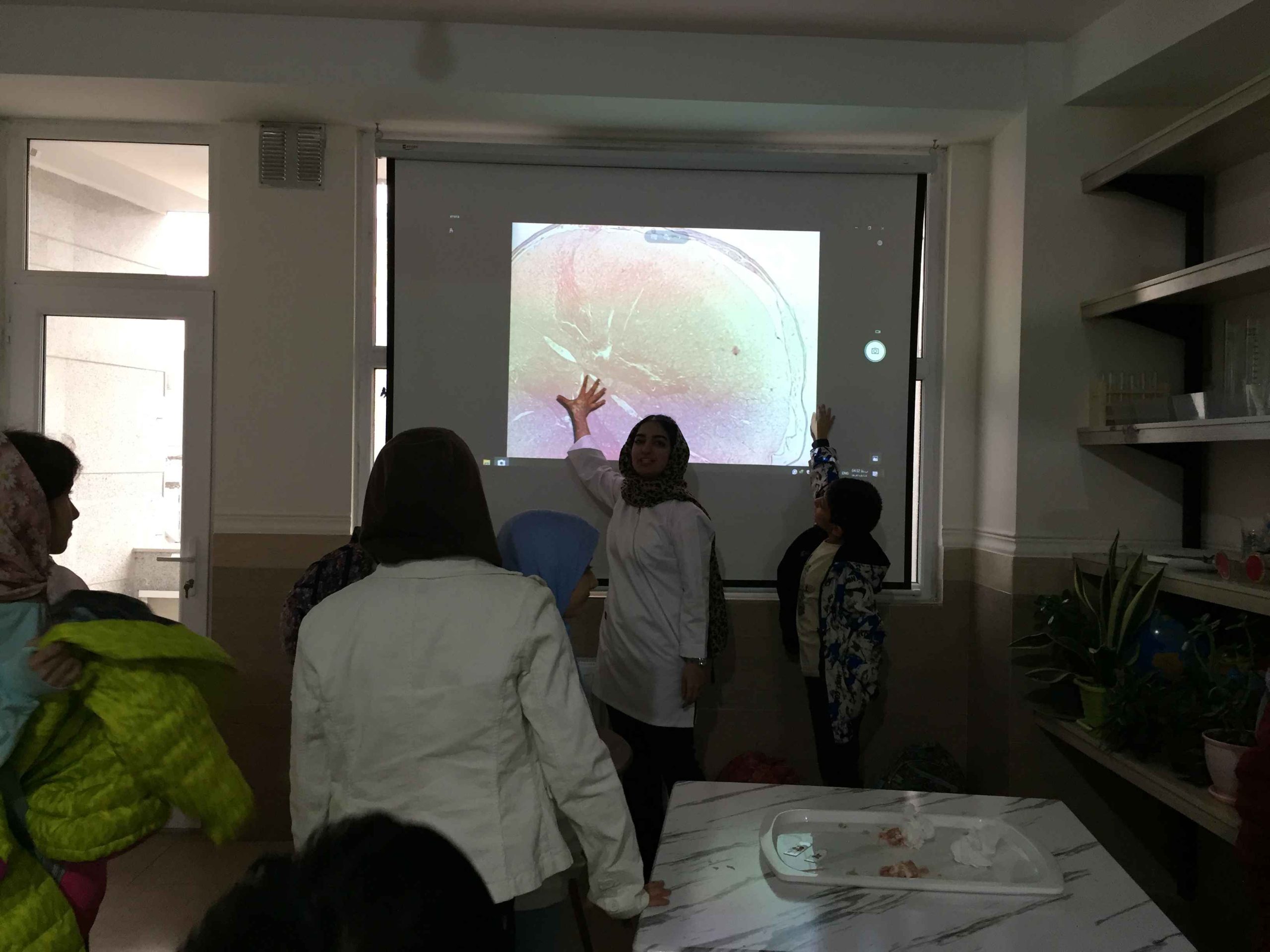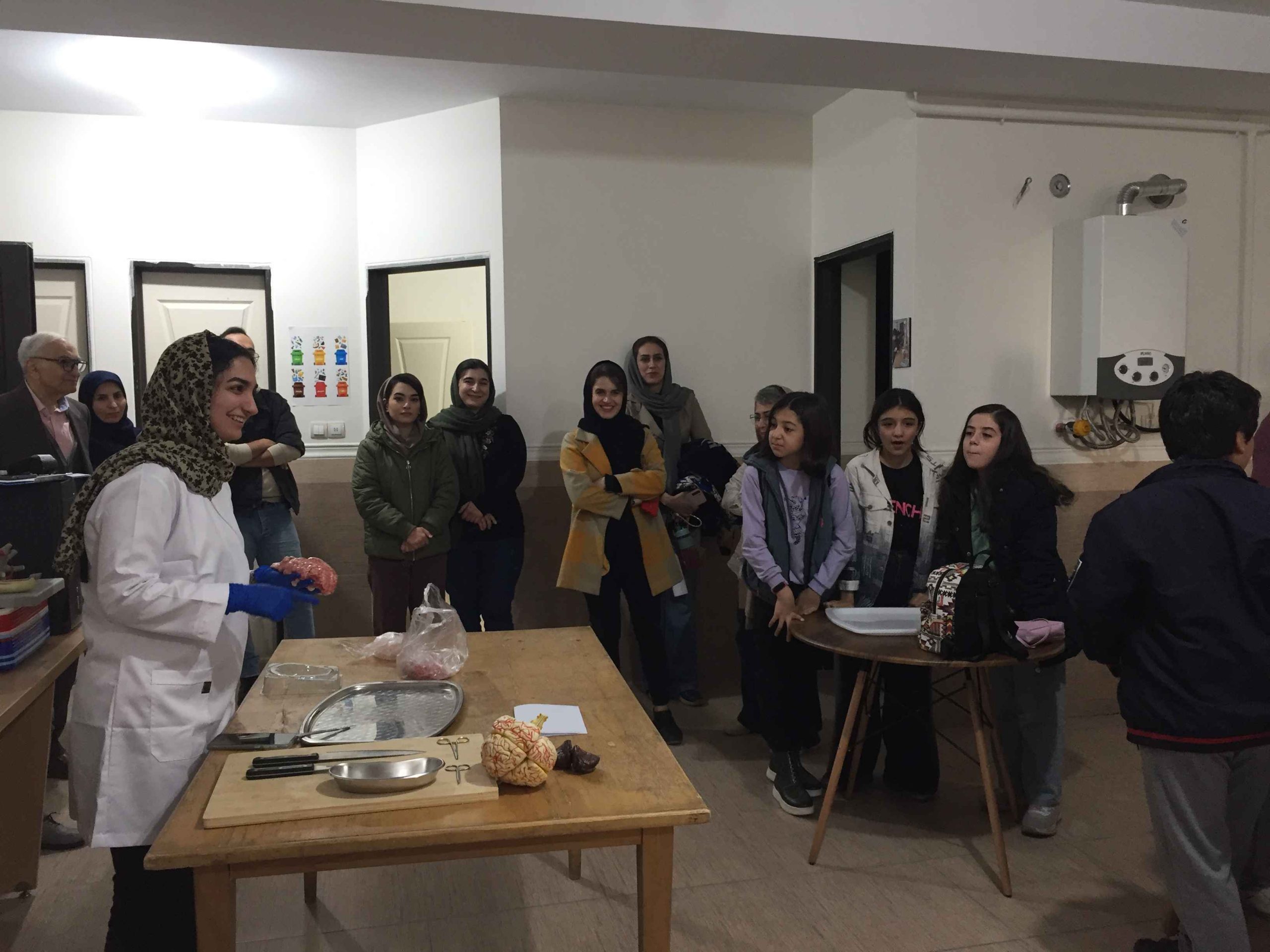 در بخش دوم، در اتاق طبیعت، بچهها در گروههای مختلف با راهنمایی حنانه اصغری، پس از نمایش عملی بخشهای بیرونی مغز روی مولاژ و مغز گوسفند و توضیح آناتومی و مرور کارکرد بخشهای آن، به تشریح مغز پرداخته و اجزای مختلف آن را از نزدیک مشاهده کردند. سپس، تکههای لازم برای نمونهبرداری در اختیار بچهها قرار گرفت تا لامها را تهیه کرده و نمونهها را با میکروسکوپ مشاهده کنند. در آخر این بخش، با استفاده از تصاویر و مولاژ بچهها با ساختار و عملکرد نورونها آشنا شدند.
