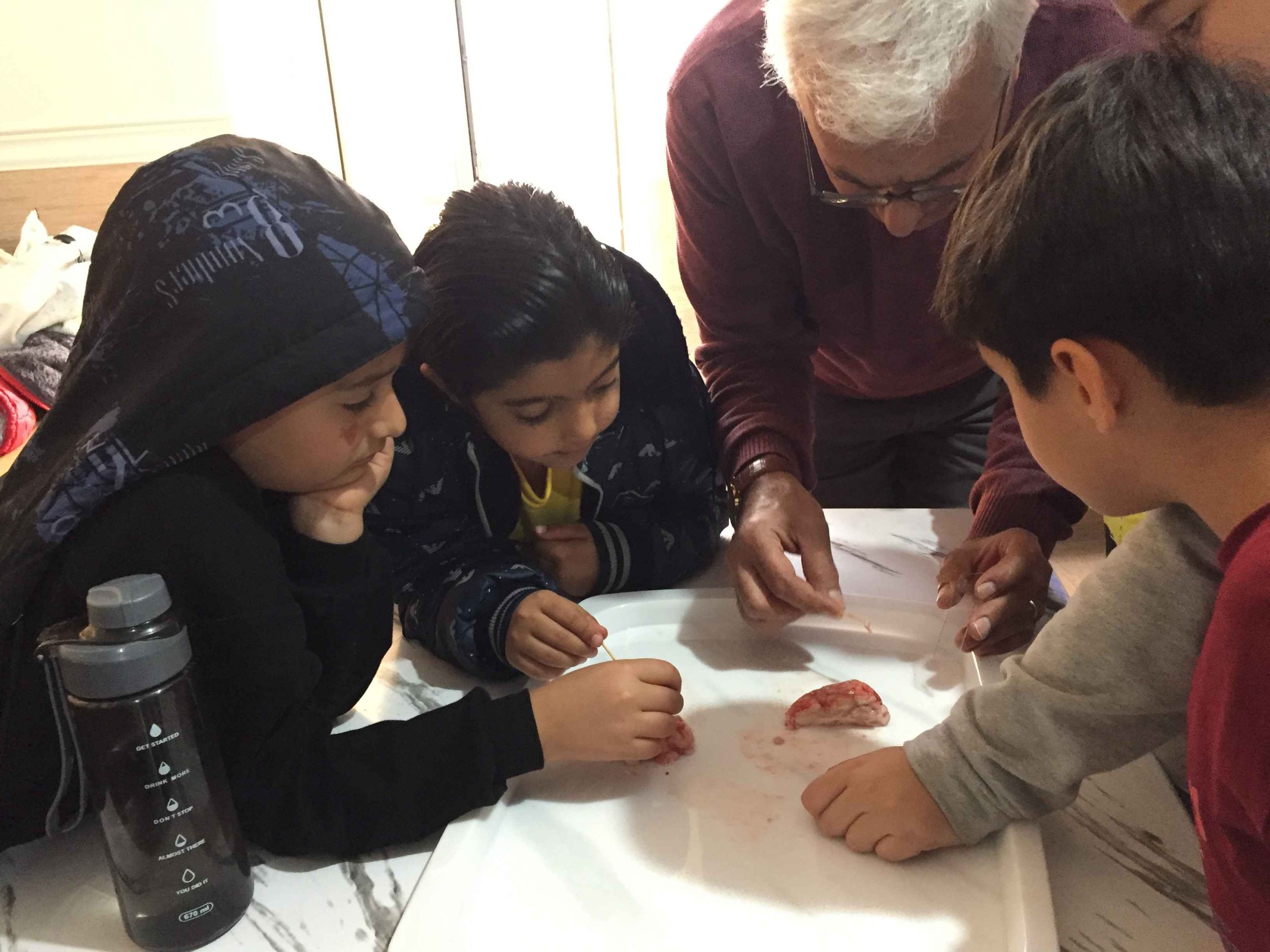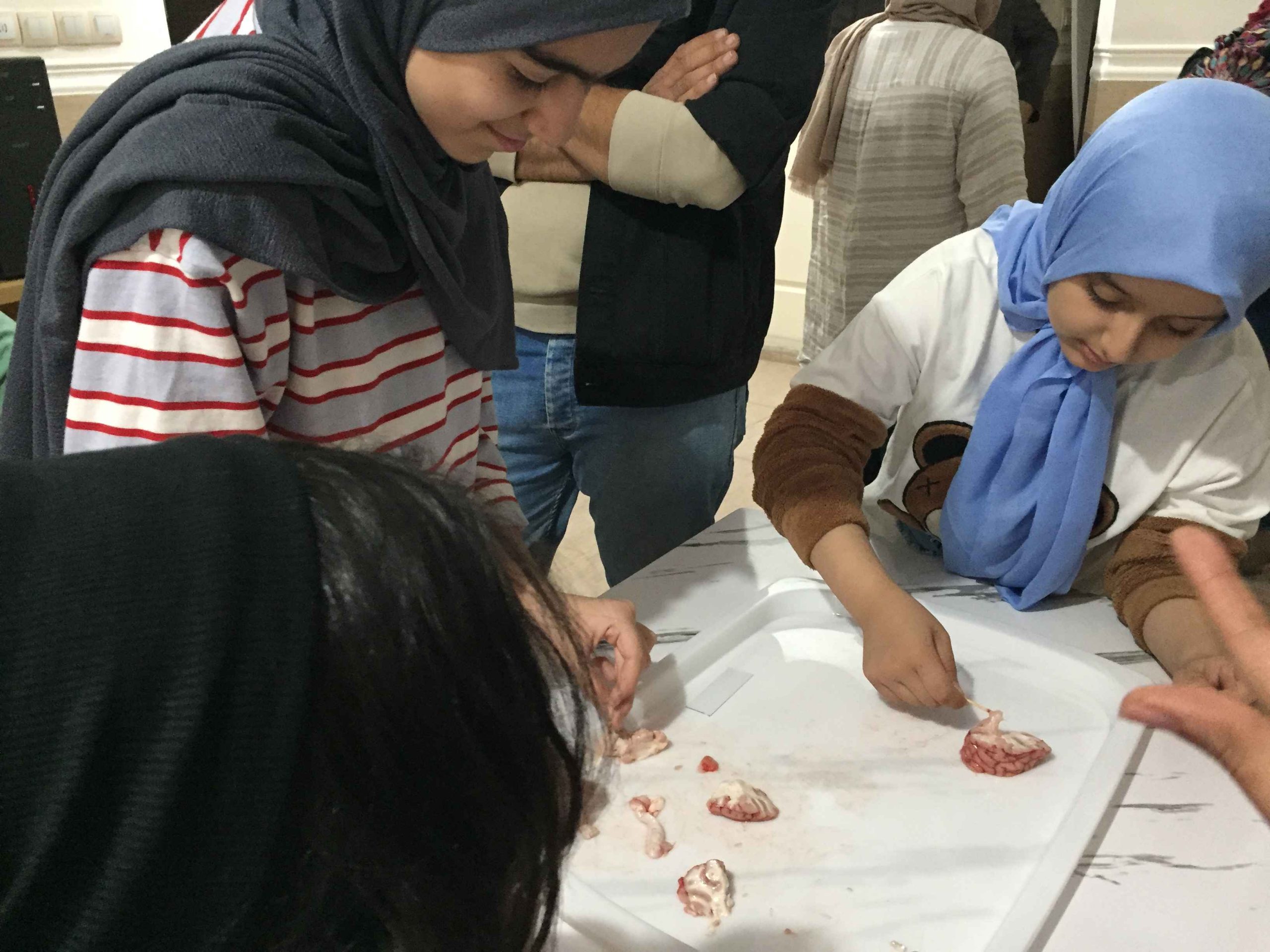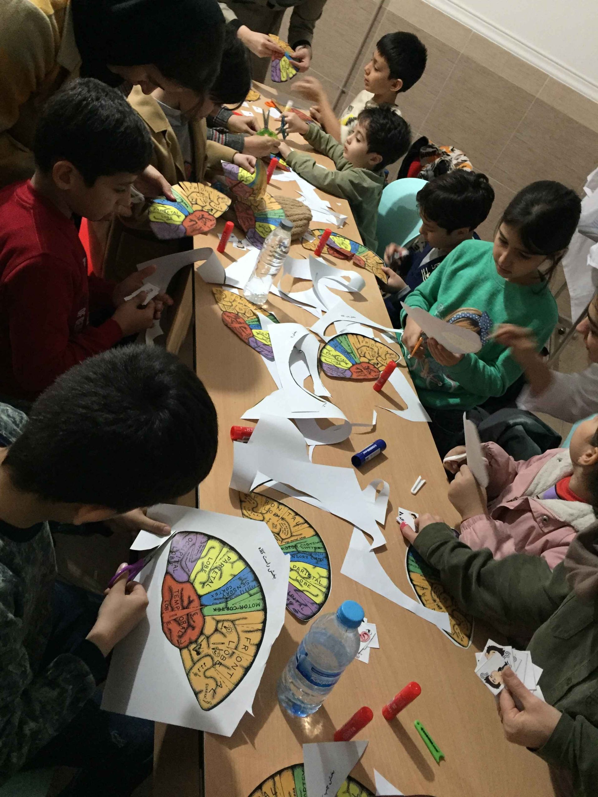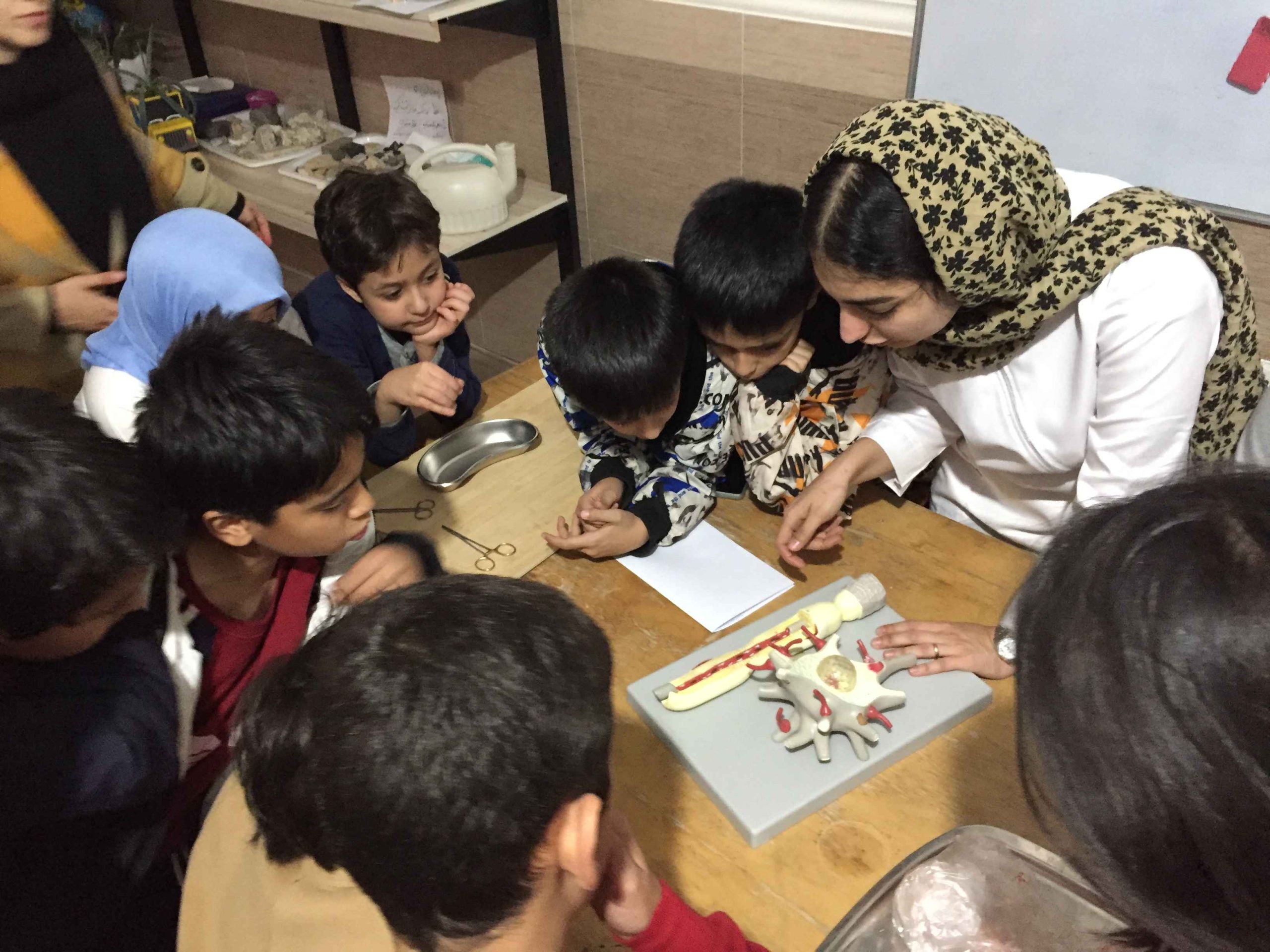 در بخش دوم، در اتاق طبیعت، بچهها در گروههای مختلف با راهنمایی حنانه اصغری، پس از نمایش عملی بخشهای بیرونی مغز روی مولاژ و مغز گوسفند و توضیح آناتومی و مرور کارکرد بخشهای آن، به تشریح مغز پرداخته و اجزای مختلف آن را از نزدیک مشاهده کردند. سپس، تکههای لازم برای نمونهبرداری در اختیار بچهها قرار گرفت تا لامها را تهیه کرده و نمونهها را با میکروسکوپ مشاهده کنند. در آخر این بخش، با استفاده از تصاویر و مولاژ بچهها با ساختار و عملکرد نورونها آشنا شدند.