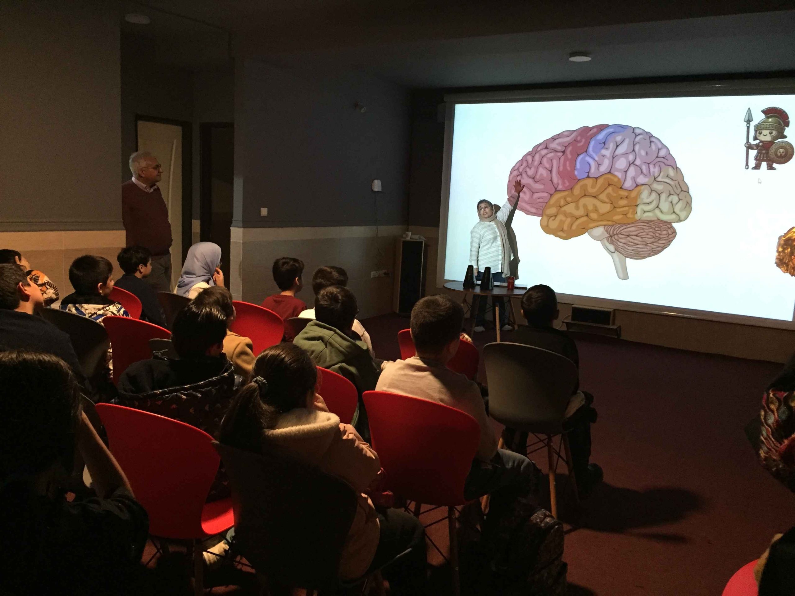 اتاق نمایش خانه دانش و چیدمانی از مغز و سیگنالهایش که به ابتکار حنانه اصغری و دکتر خالصیفرد در کنج اتاق نگاهها را خیره میکرد و هیجان انتظار برای کشف دنیای هیجانانگیز مغز، نخاع، نورونها و حواس را بالا میبرد.