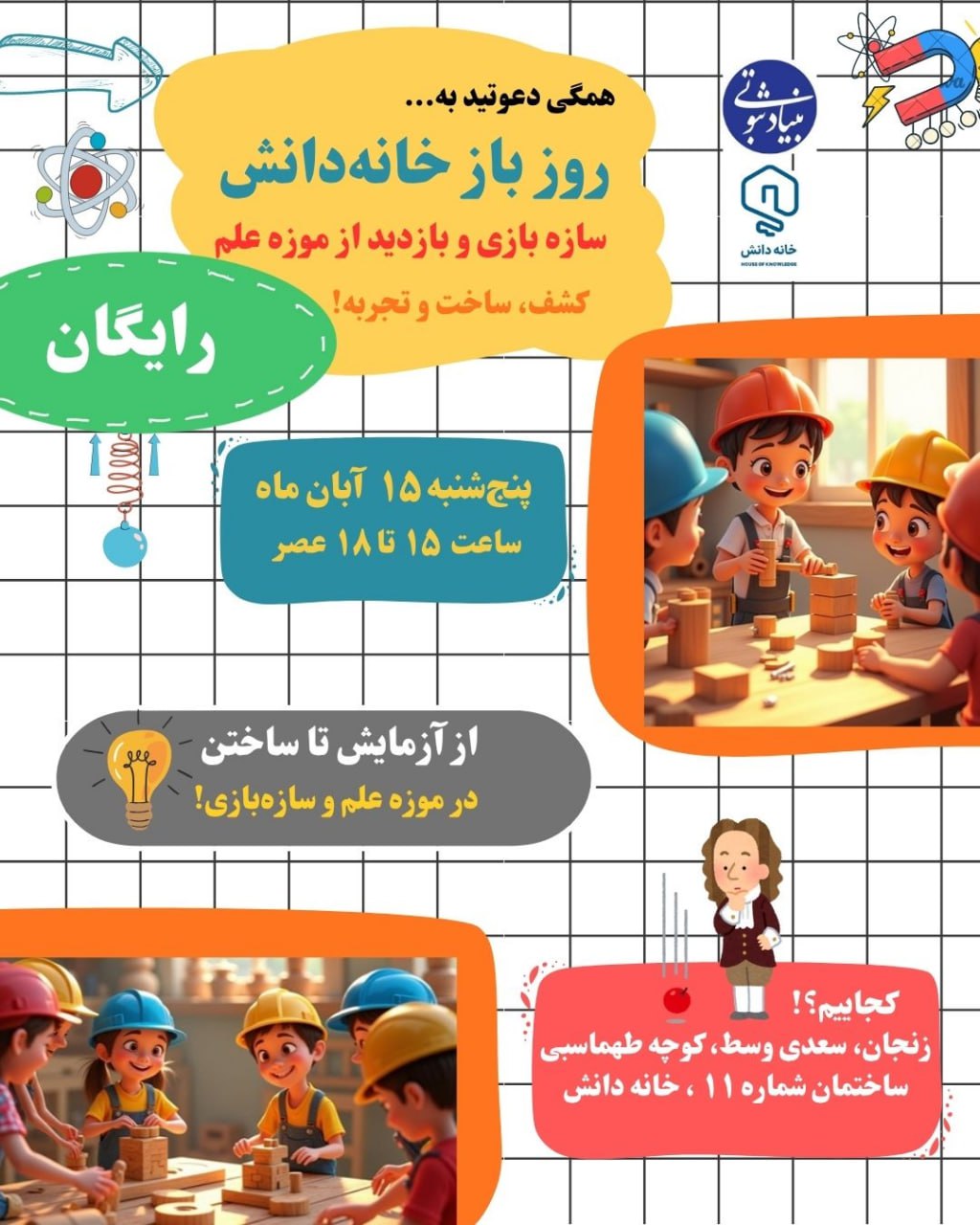 بخش سازهبازی خانه دانش بنیاد ثبوتی درهفته پنجم از فصل پنجم مجموعه مسابقههای سازهبازی، ساعت 3...